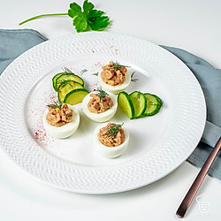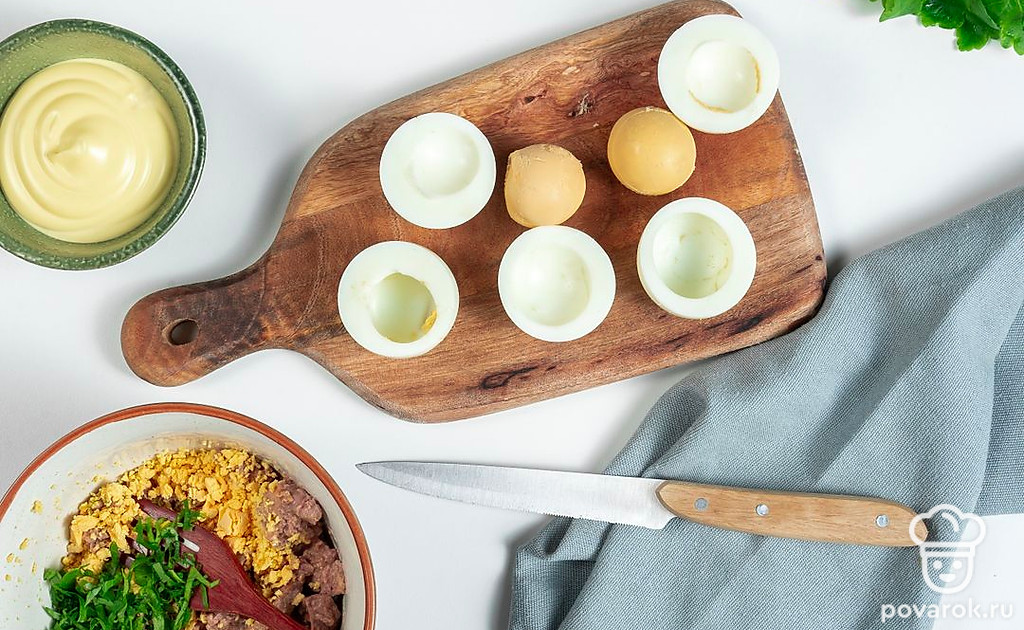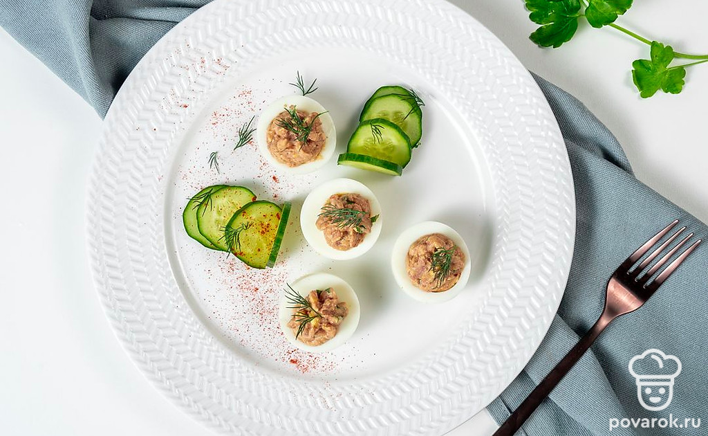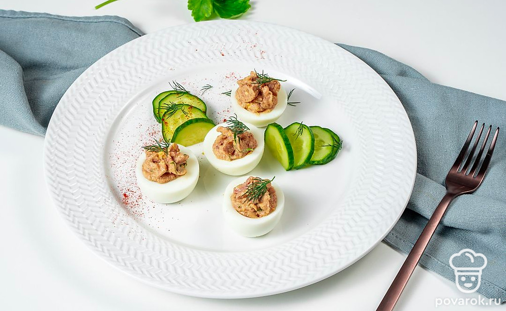 Яйца, фаршированные печенью трески — это вкусная и полезная закуска, которая подойдет для праздничного стола. В печени трески содержится рыбий жир, который хорошо усваивается в организме. Это позволяет сохранить азотистый материал, необходимый для построения новых тканей. Печень трески незаменима для спортсменов и включена в их рацион, потому что богатый витаминами состав быстро восстанавливает организм после нагрузки. Но стоит отметить, что частое употребление печени трески не рекомендуется.