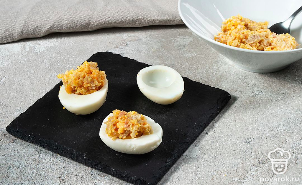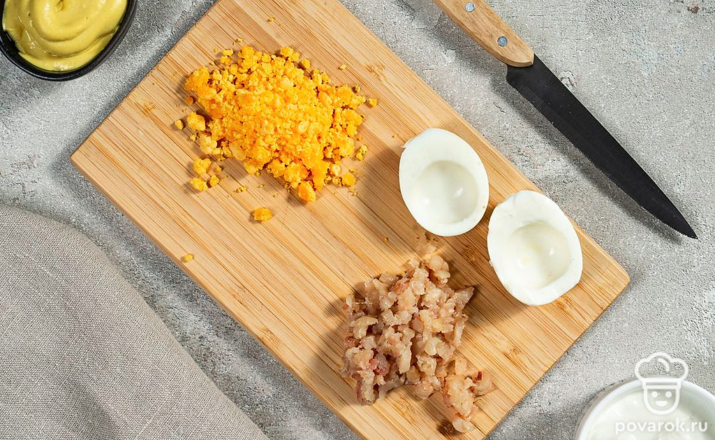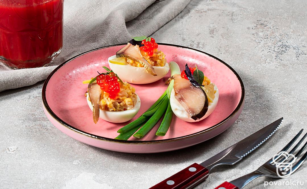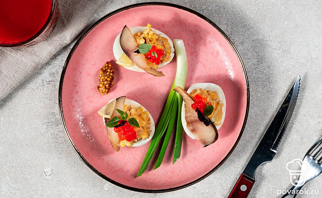 Яйцо, фаршированное скумбрией — прекрасное блюдо для любителей копченой рыбы. Скумбрия — рыба, хорошо подходящая для копчения и остающаяся при такой обработке сочной, мягкой и очень вкусной. В продаже можно встретить рыбу холодного и горячего копчения, последняя сделает блюдо более ароматным. При покупке обратите внимание на срок годности продукта: он должен составлять от 20 до 90 суток. Цвет рыбы должен быть равномерным, мясо — плотным, поверхность — блестящей.