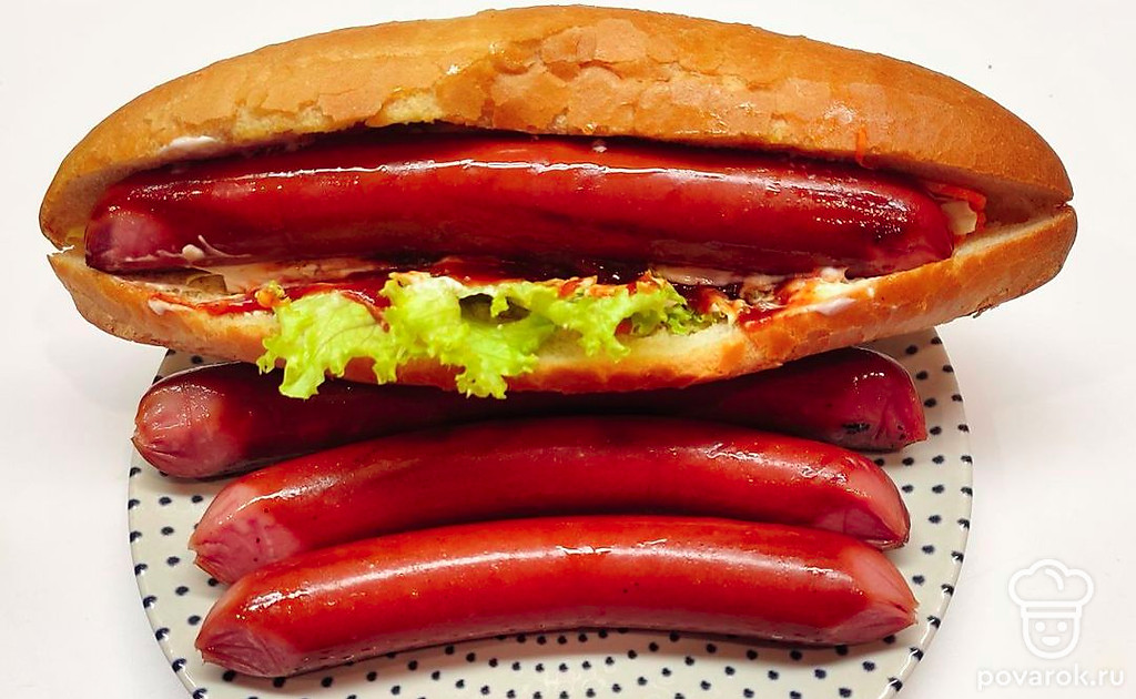 Хот — дог сытный и в то же время полезный перекус. Существует множество вариантов приготовления денной закуски. Ее делают из разных колбасных изделий, с овощами и различными соусами. Приготовление закуски позволит сэкономить время и приготовить ее на ходу. Булочку можете купить в магазине или приготовить самостоятельно.