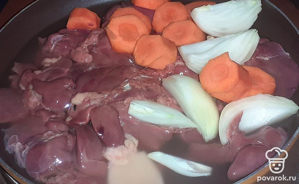 Добавьте в сковороду нарезанные лук и морковь, тушите до готовности 20 минут.