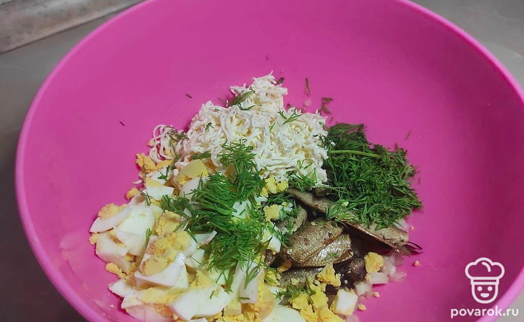 Шпроты, майонез и плавленый сыр – довольно сытное сочетание в одном блюде, поэтому соблюдайте размер порции и ешьте побольше зелени.