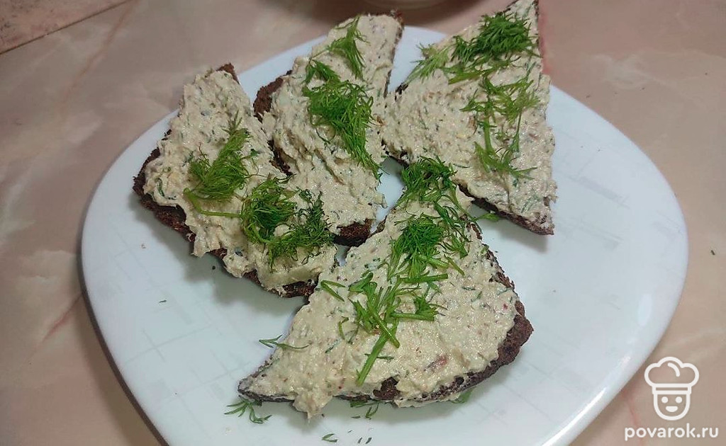 Добавьте майонез, соль и перец по своему вкусу и пробейте массу блендером до однородного состояния. Подавайте с белым или черным хлебом.