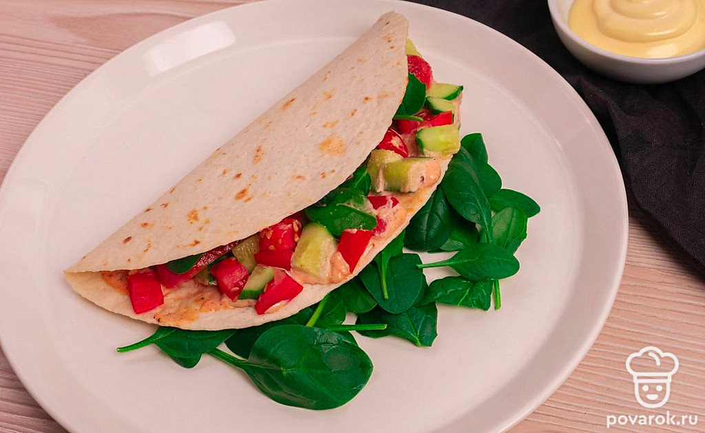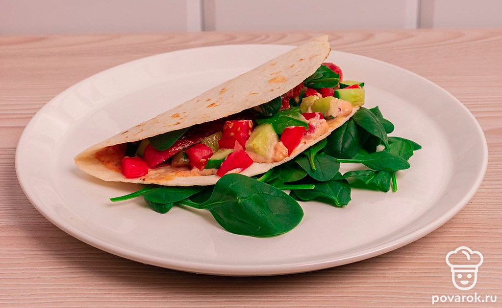 Тортилья- тонкая, круглая пшеничная лепешка из Мексики. Вариаций приготовления блюд с тортильей не счесть. Традиционно начинкой служит курица, кукуруза, свежие овощи и соус. Тортилья с сосиской и овощами- рецепт из того, что всегда есть дома, под рукой. Простой в приготовлении рецепт, легкий, сытный и очень вкусной тортильи. Рецепт перед вами, осталось приготовить!