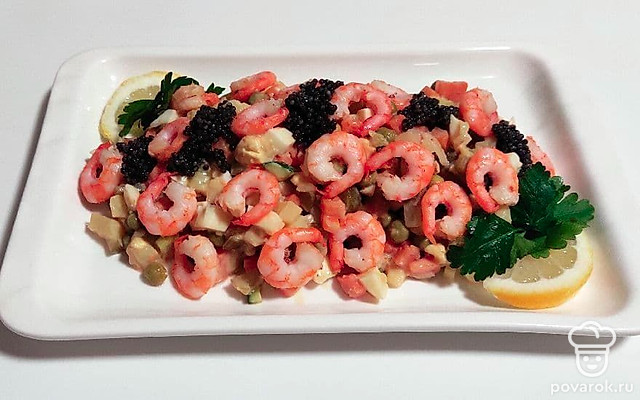 Если вы не знаете, какой салат приготовить на Новый год или на день рождения, то оливье с черной икрой и креветками будет отличным вариантом и очень необычным вариантом для всей семьи. Несмотря на легендарность этого салата, он имеет огромные вариации приготовления, такой вариант не уступит ничему.