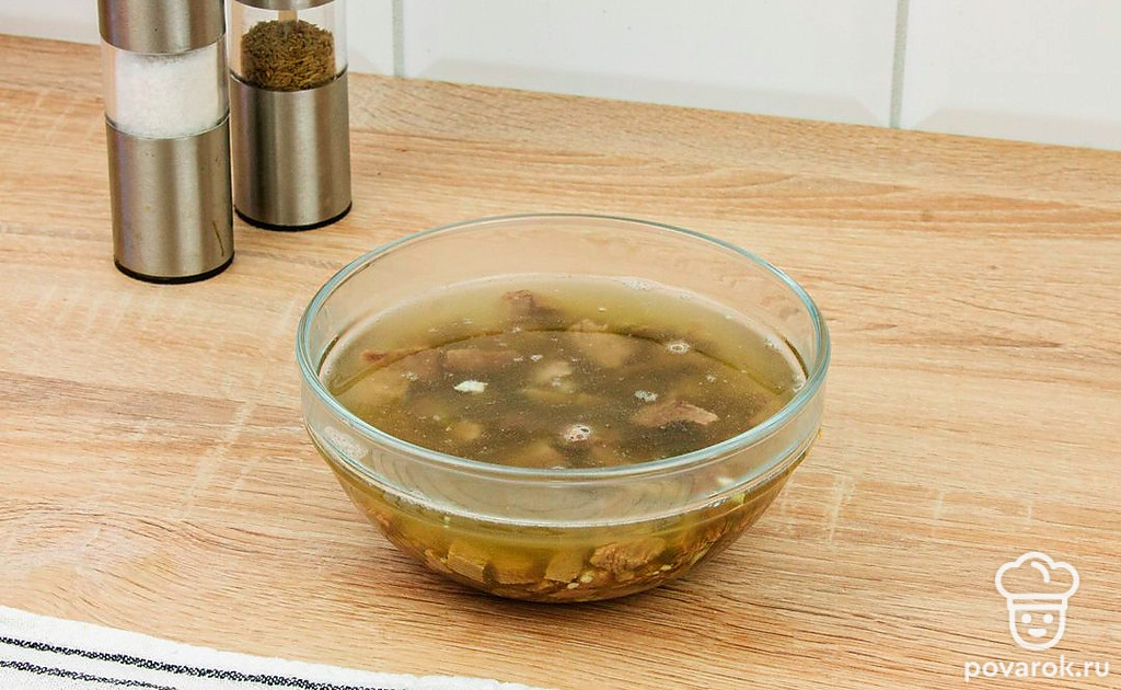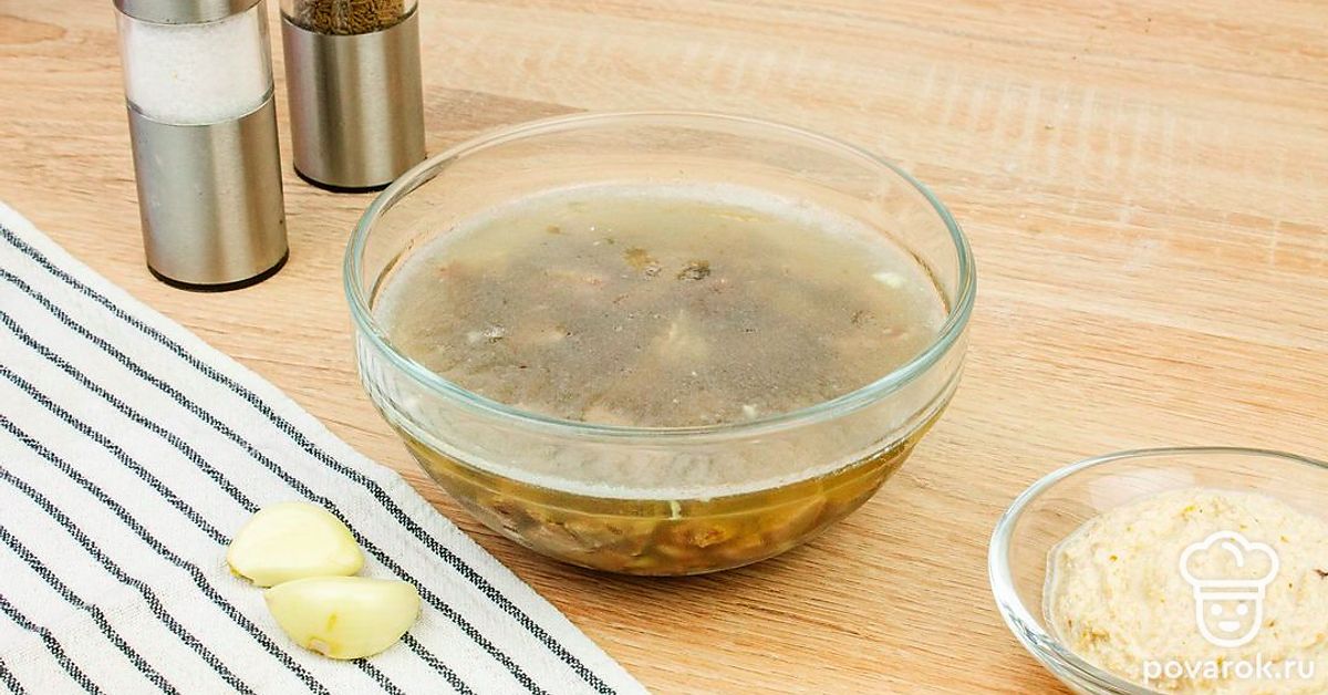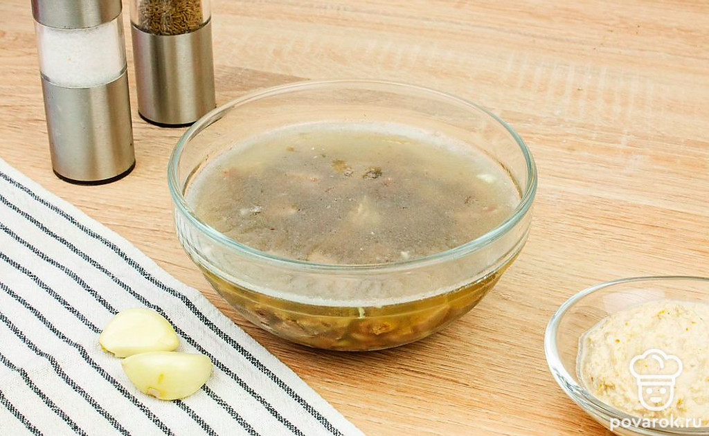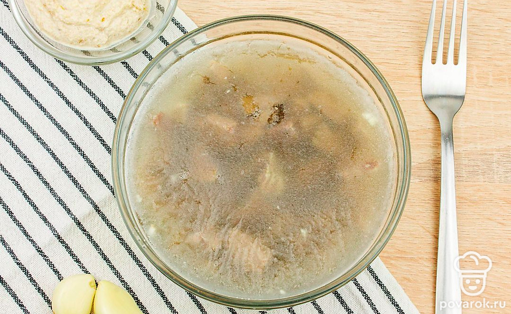 Блюдо из застывшего в результате охлаждения мясного бульона называется холодец. В холодце содержатся вываренные из хрящей желирующие вещества, полезные для связок и сухожилий. Холодец улучшает состояние кожи, волос и ногтей, придавая им здоровый блеск. Для облегчения процесса приготовления, используйте желатин. Предварительно разведя его в бульоне комнатной температуры. Затем доведите до кипения на водяной бане и используйте в рецепте.