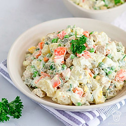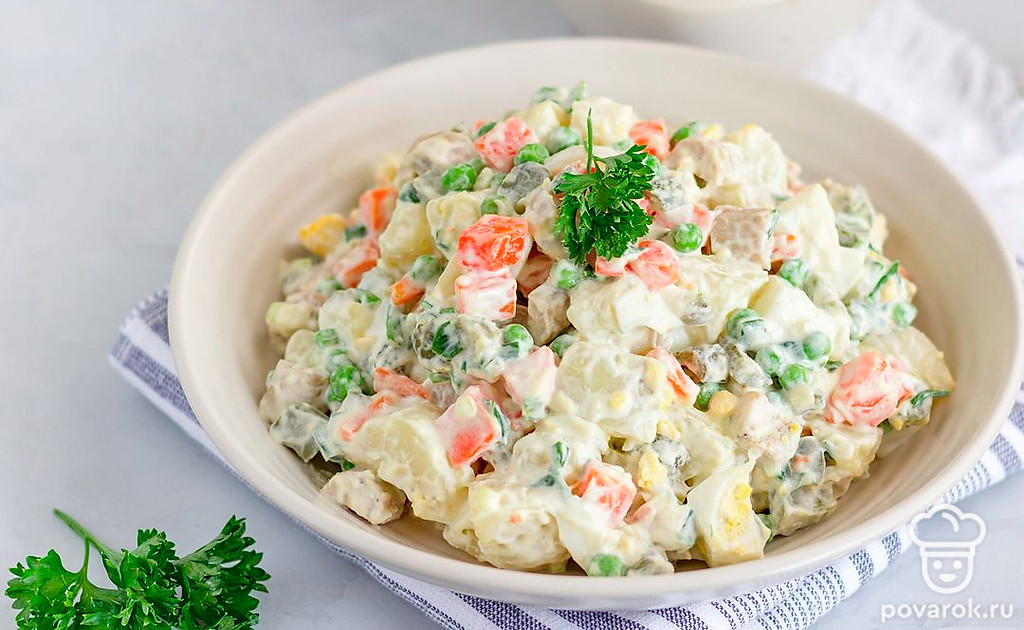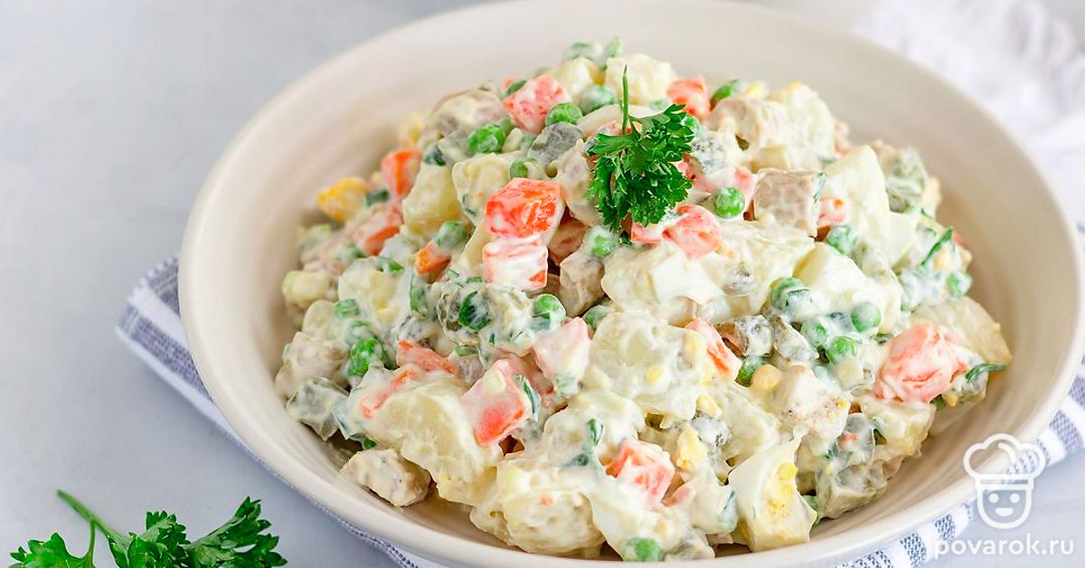 Новый год — это мандарины, хлопушки и загаданное желание под бой курантов, это подарки, елка и шампанское, это фильмы Эльдара Рязанова, большой праздничный стол и салат «Оливье». Приготовьте классический салат «Оливье» с говядиной и домашним майонезом по нашему рецепту.