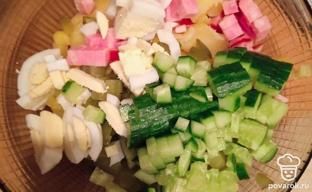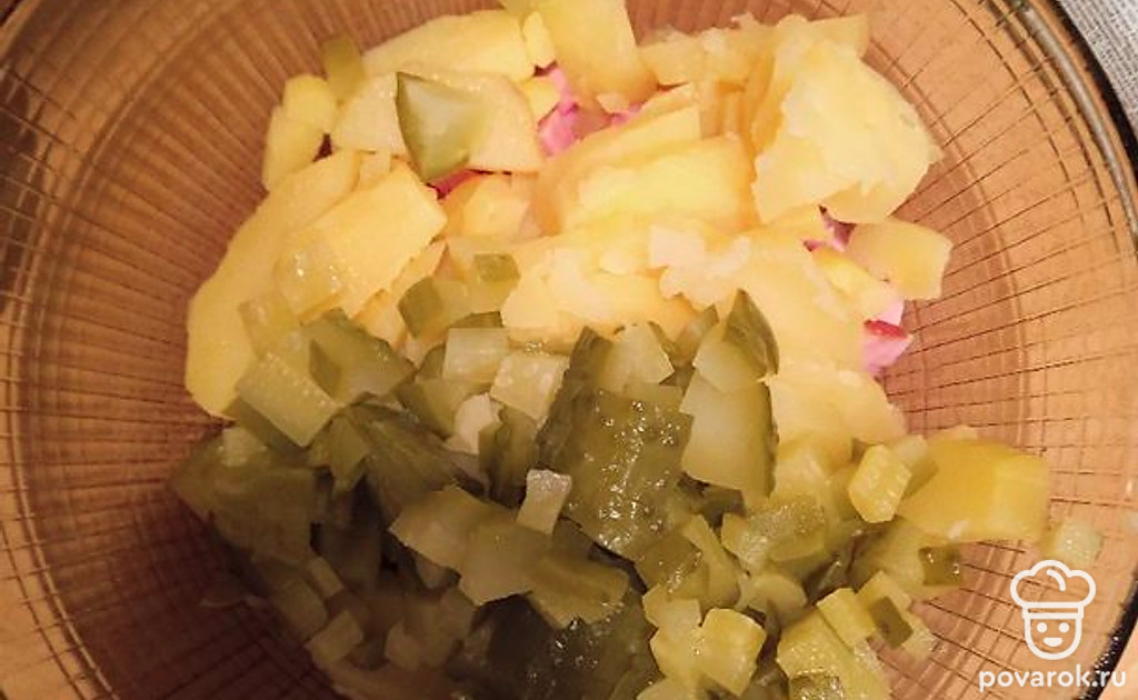 Подготовьте все ингредиенты. Картошку и яйца отварите.