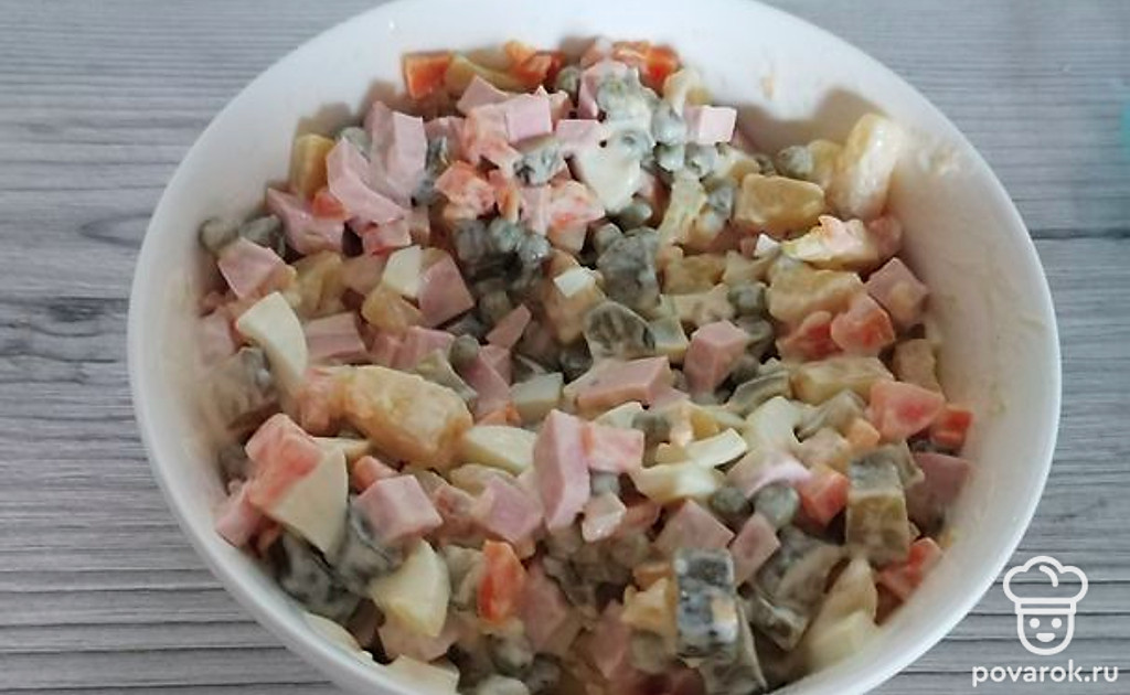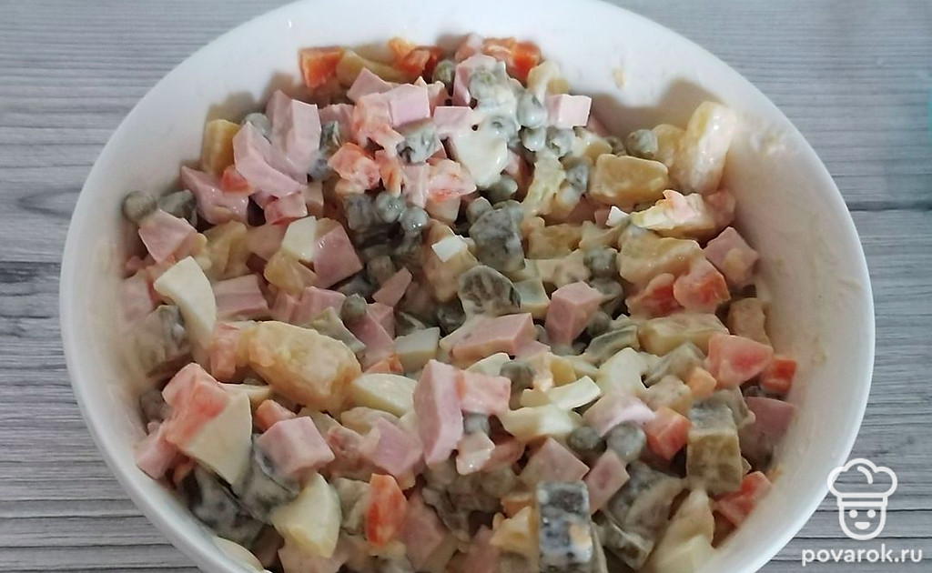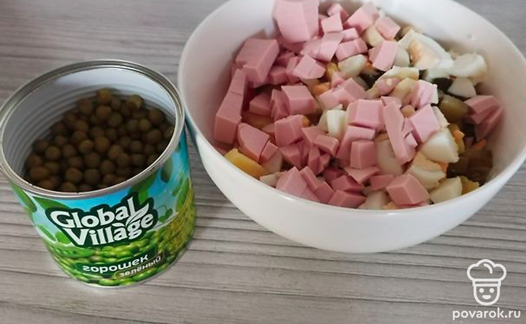 Решила приготовить оливье с зеленым горошком. Понравится всем.