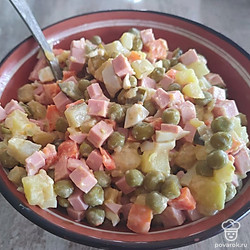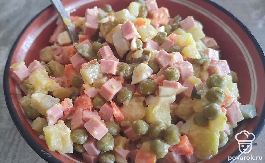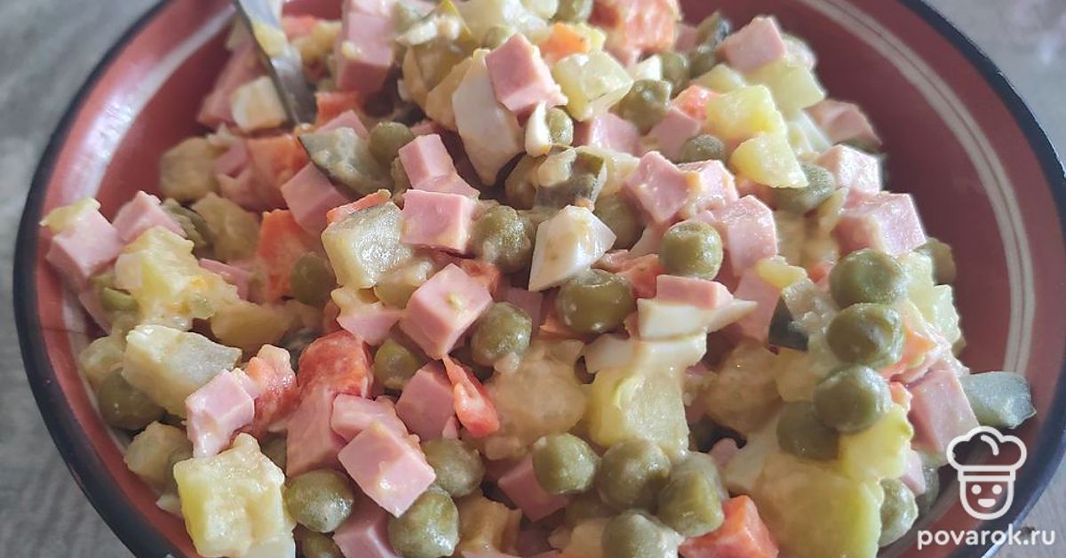 Сытный салат. Подойдет как на новогоднее застолье, так и в обычный день.