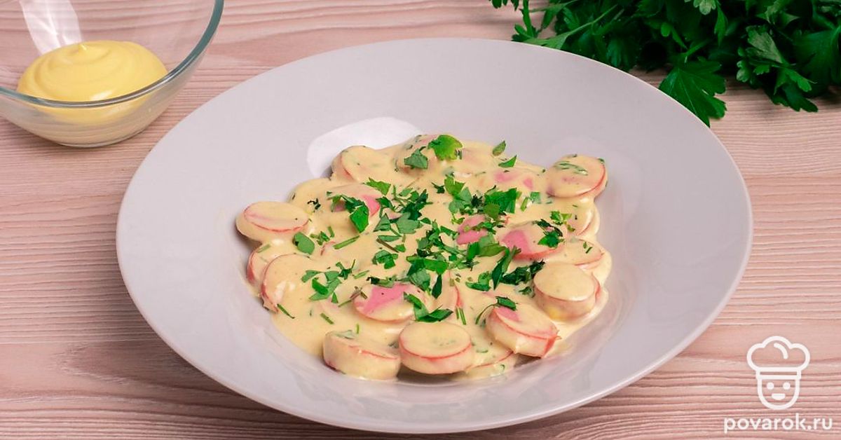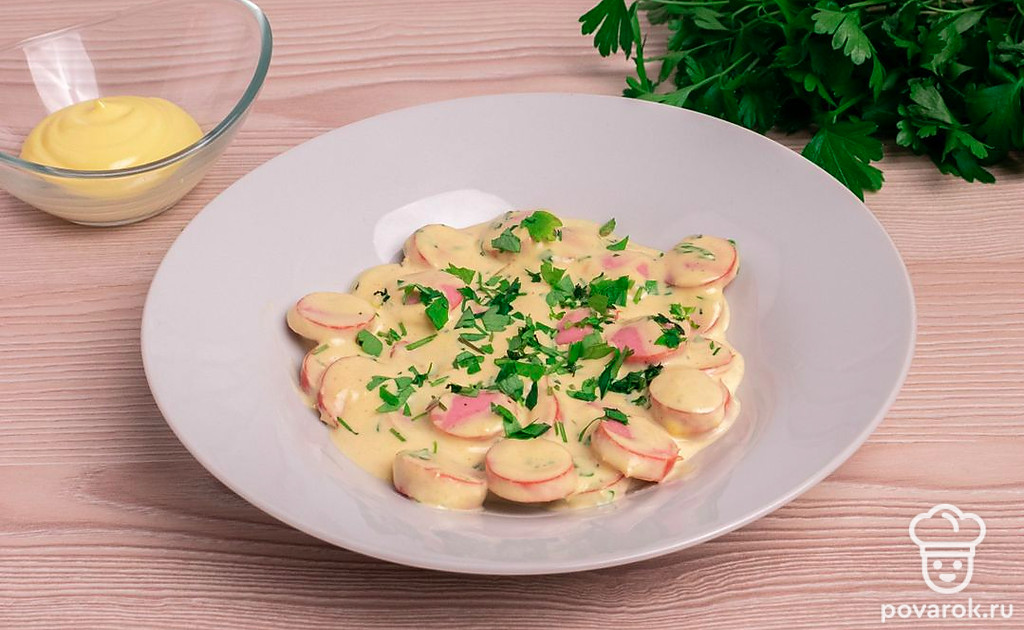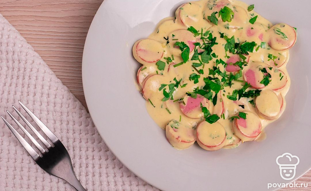 Сосиски с майонезно-горчичным соусом