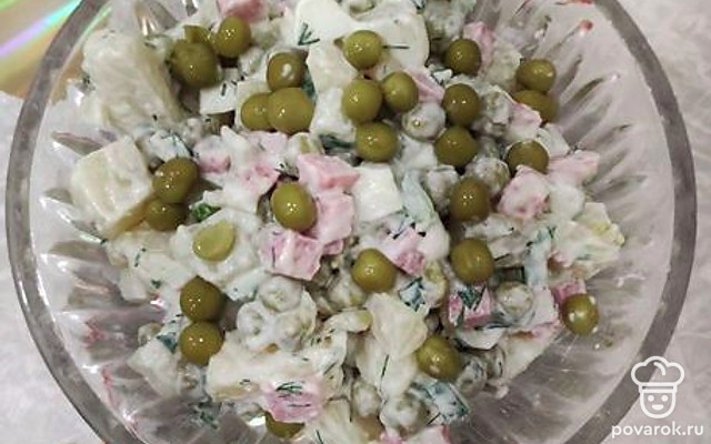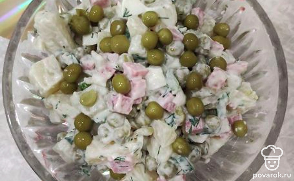 Оливье считается одним из самых известных салатов в России. Состав и рецепты салата оливье достаточно разнообразны, но блюда получаются сытными и вкусными. Обязательно стоит попробовать каждый. Мы предлагаем вам приготовить оливье из копченой колбасы, зеленого горошка, зелени, картофеля, яиц и прочих ингредиентов по нашему рецепту. В приготовлении использовали горох от фирмы «Global Village».