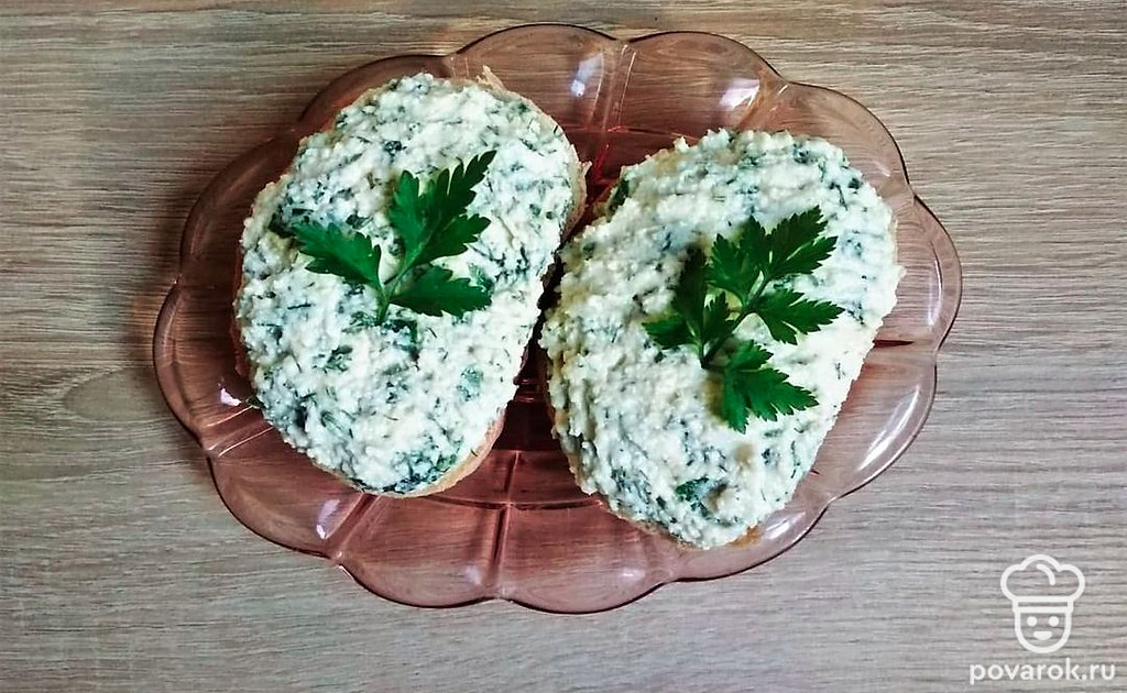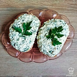 Вкусная закуска с брынзой, сливочным маслом, чесноком и зеленью. Ваши гости будут в восторге от этой вроде простой, но в тоже время нереально вкусной закуской. Для заправки можете использовать не майонез, а сметану, или натуральный йогурт, такую намазку для гренок следует посолить и поперчить по своему вкусу. Пропорции начинки для хлеба определяйте по своему вкусу.