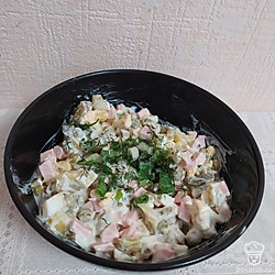 Салат можно не заправлять полностью, лучше в отдельной тарелке по чуть-чуть, по необходимости. Можно украсить зеленью. Приятного аппетита!