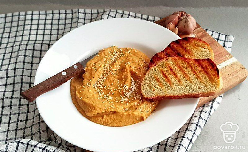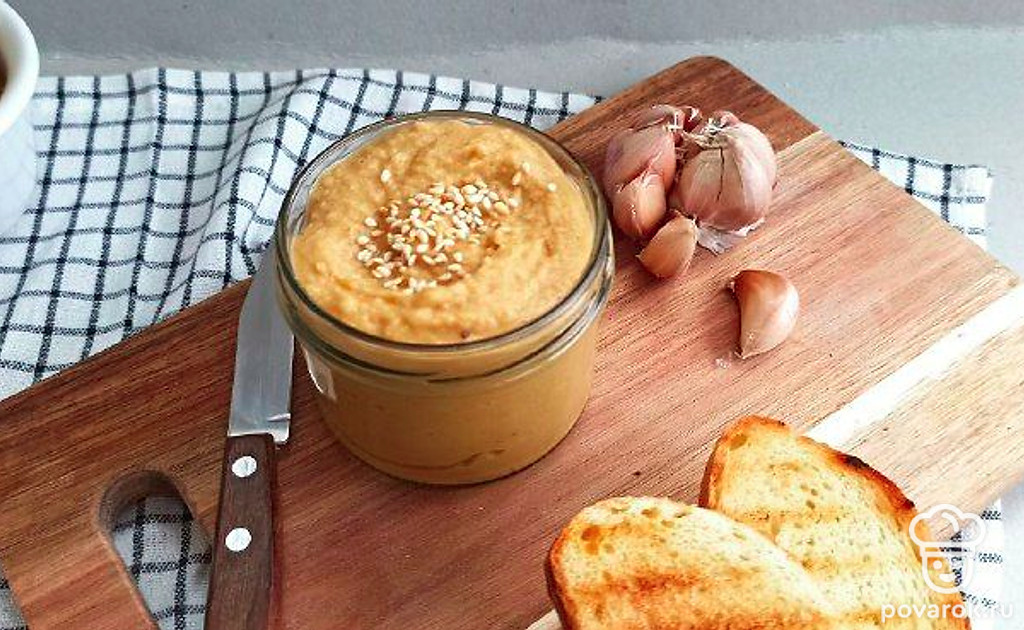 Сытный паштет из нута и вяленых томатов с чесноком и кунжутом