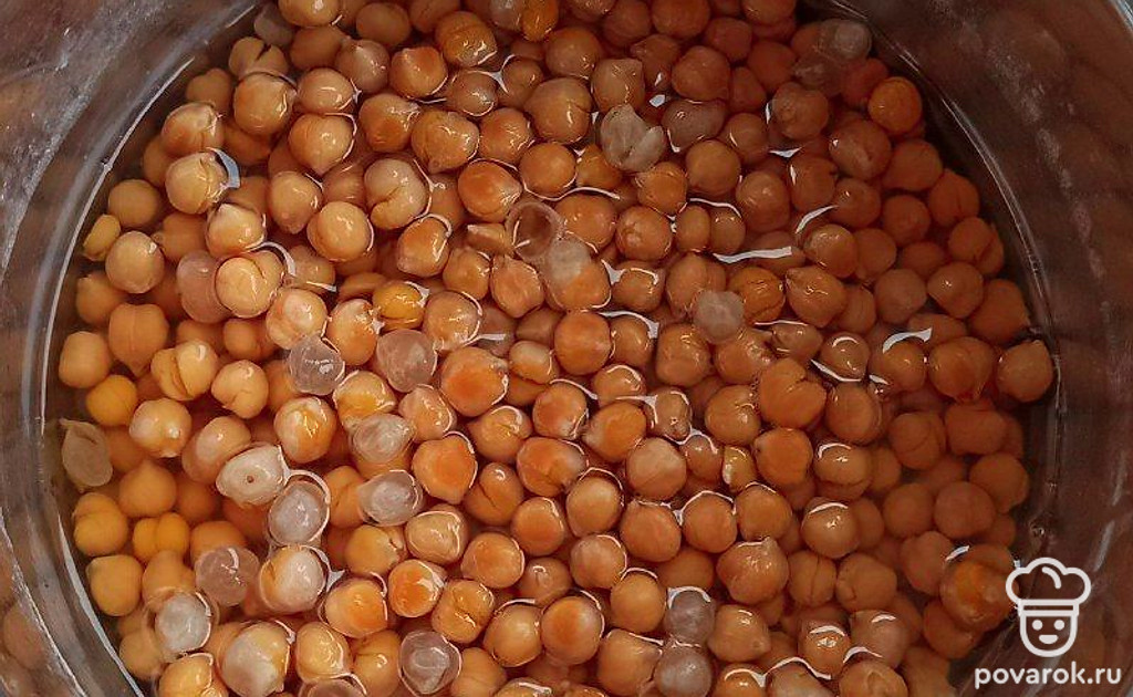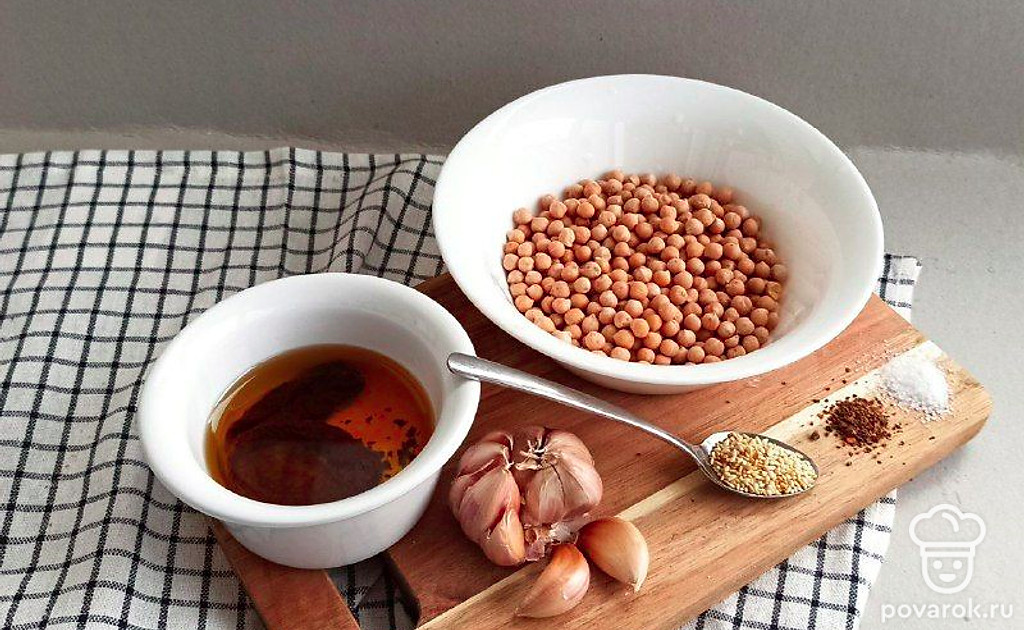 Почистите и ополосните чеснок. Нут помойте и залейте водой на несколько часов.