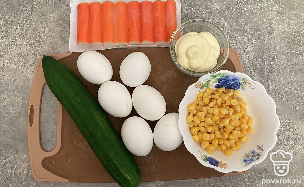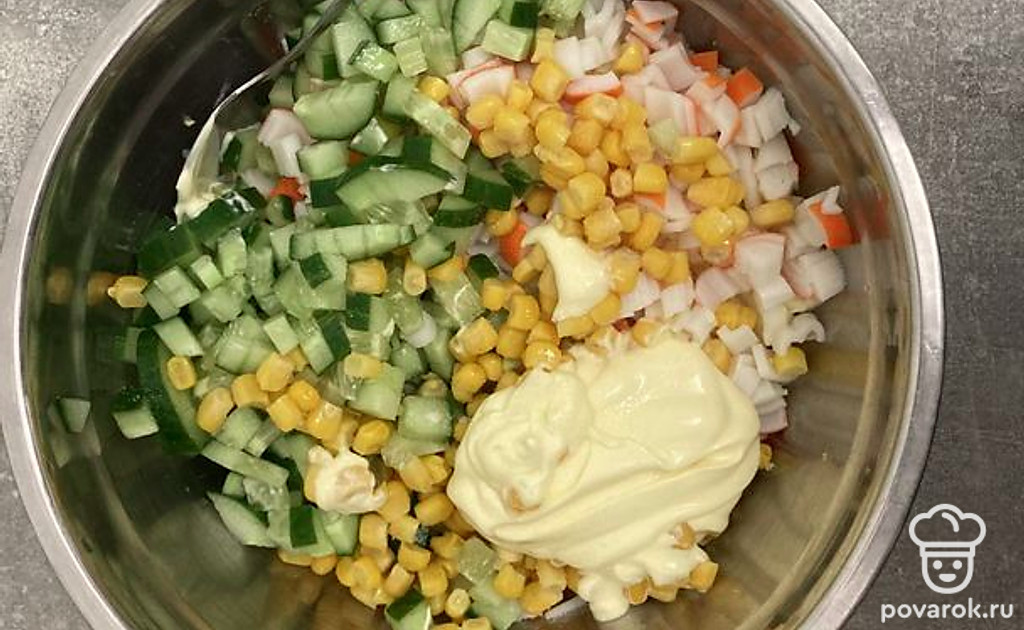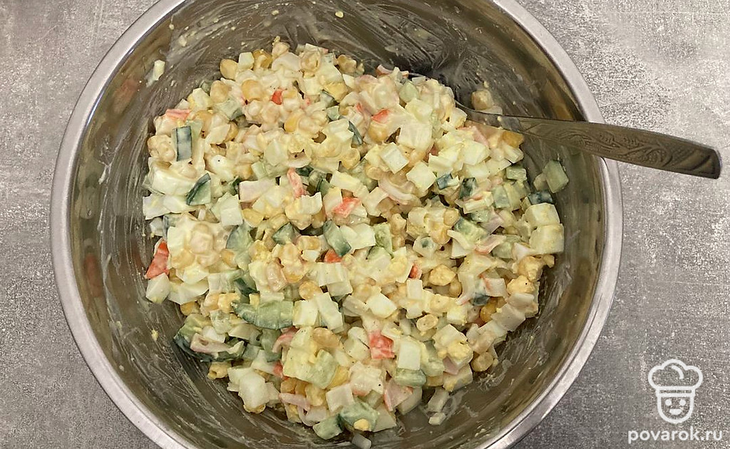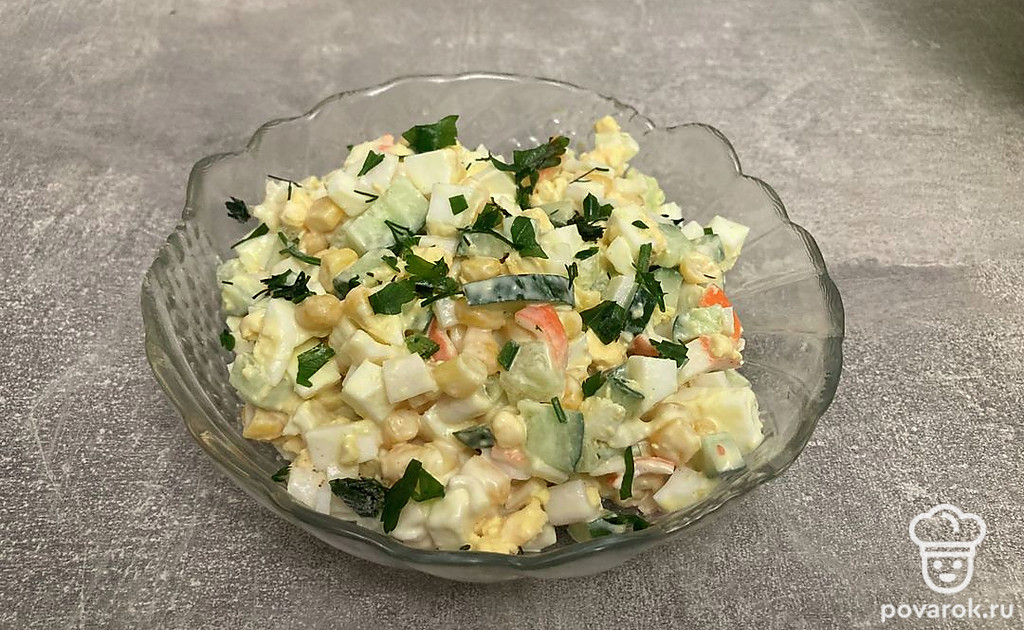 Салат с крабовыми палочками, яйцом, кукурузой и майонезом
