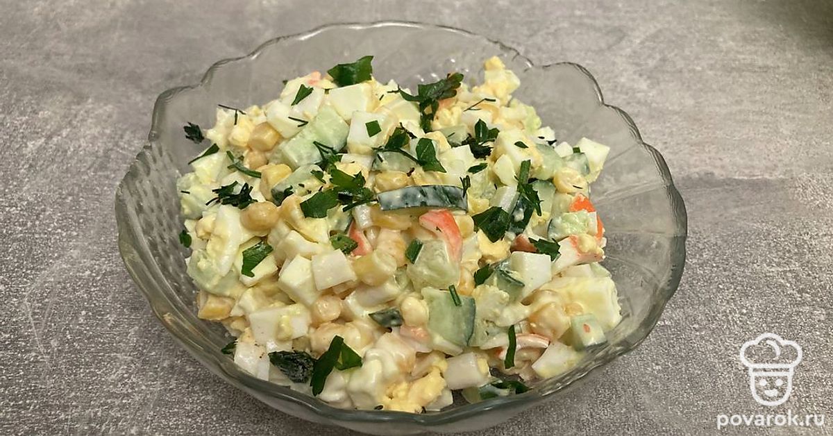 Вкуснейший салат с крабовыми палочками и зеленым горошком