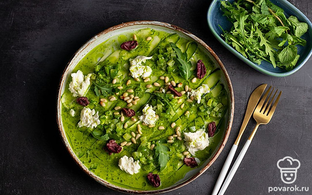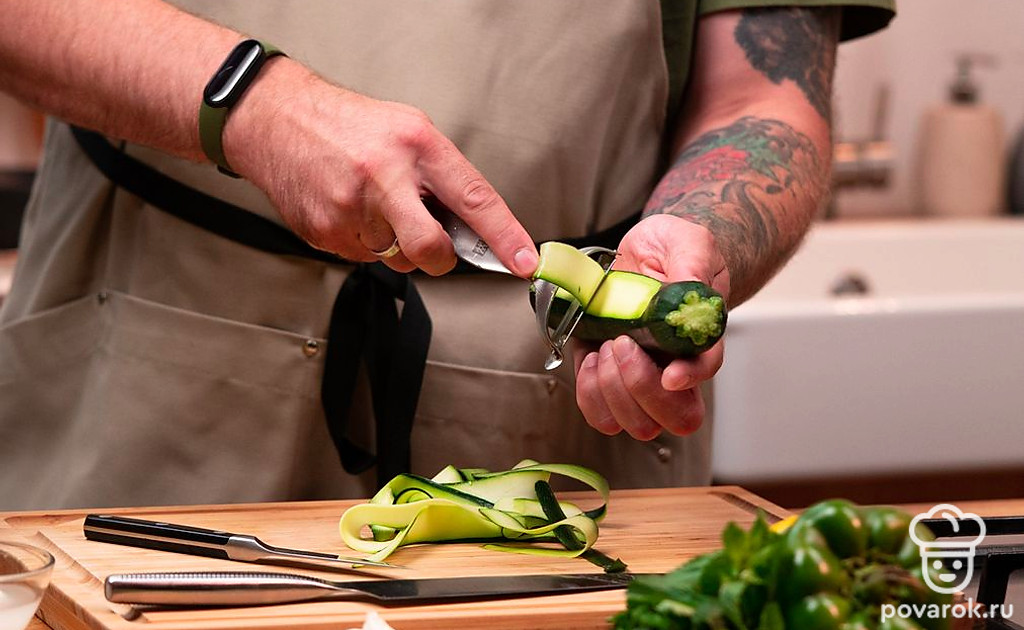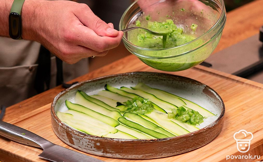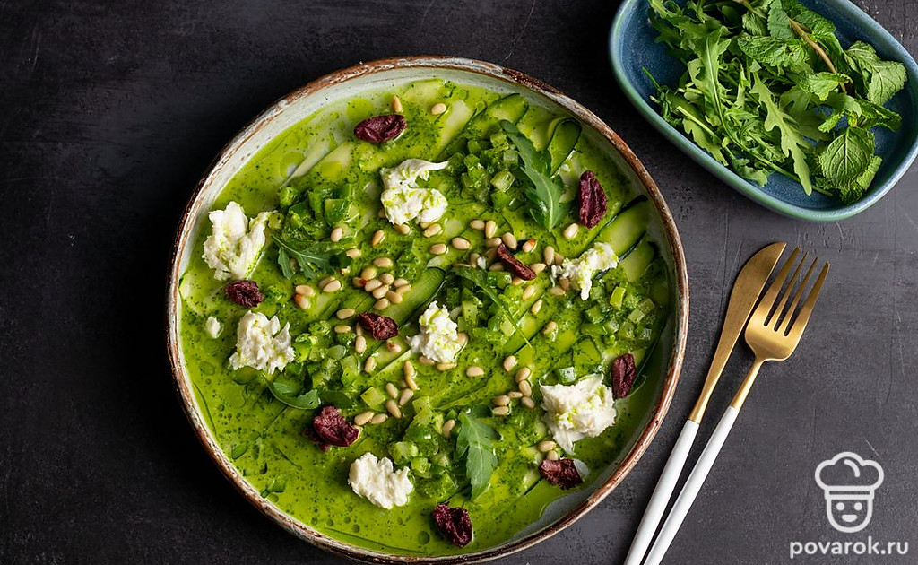 Вегетарианский вариант знаменитой итальянской закуски. Карпаччо — тонкая нарезка сырого продукта (чаще всего мяса), сдобренного пряностями. Если вас пугает употребление сырого мяса, попробуйте разнообразить ваше меню карпаччо из цуккини.