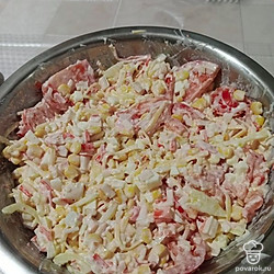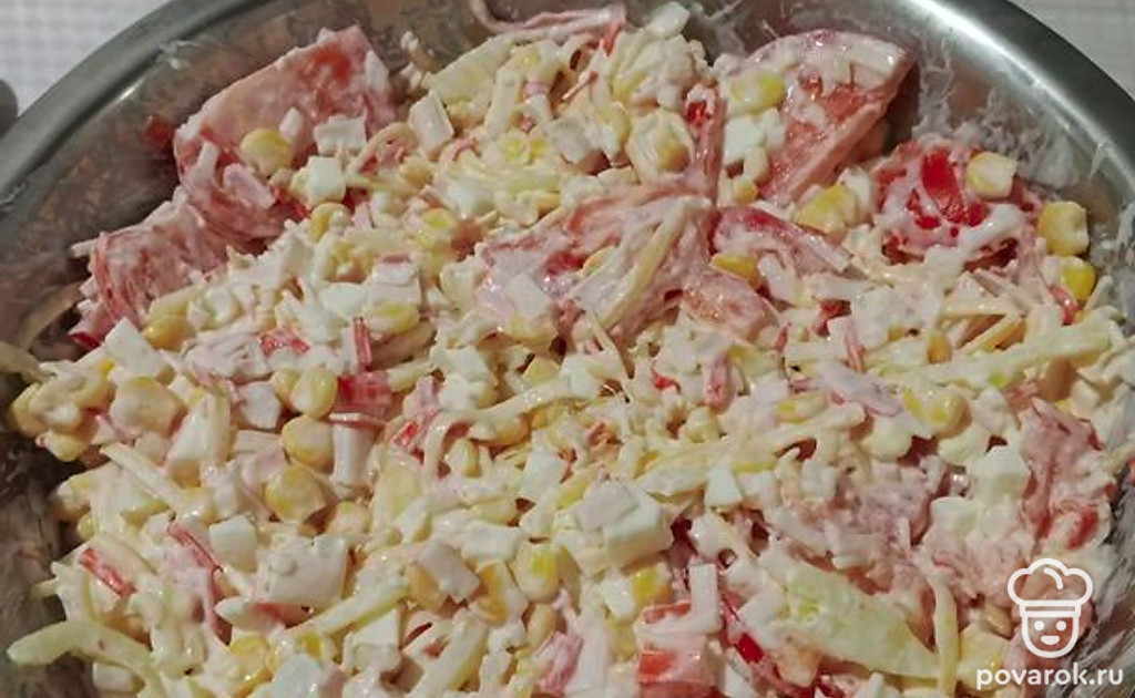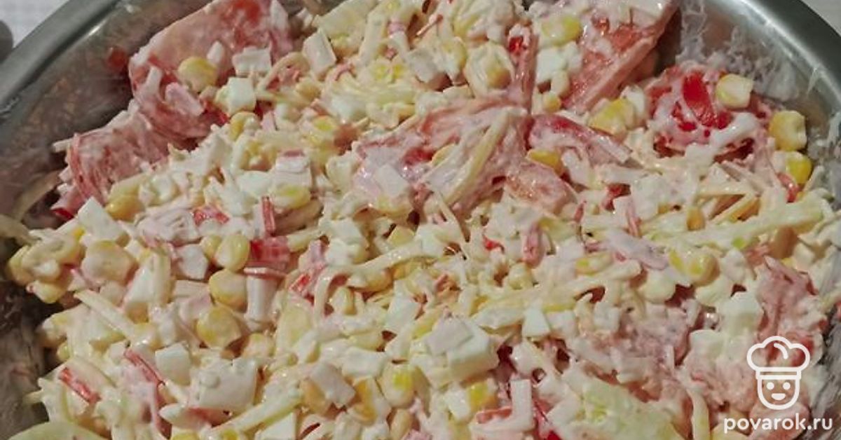Необычный крабовый салат готов. Попробуйте, очень вкусно.