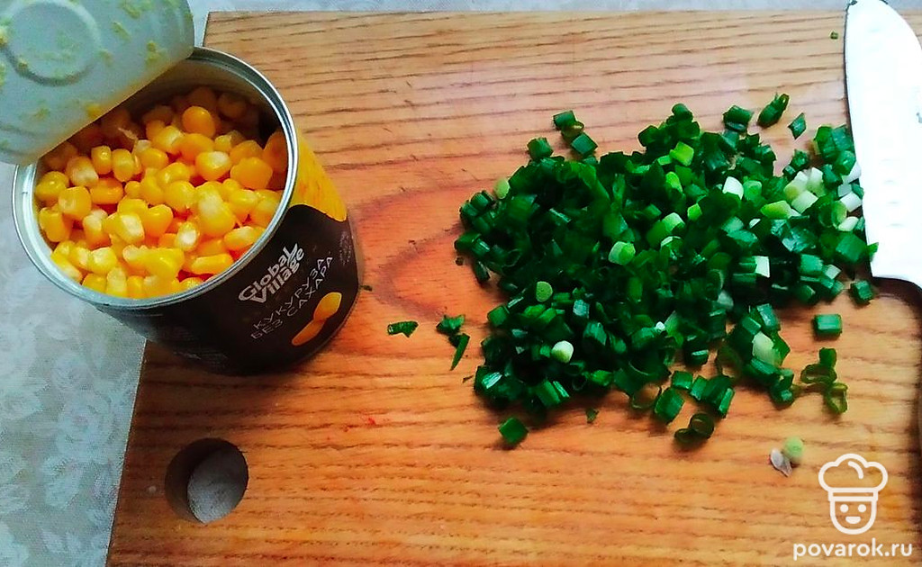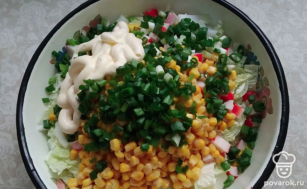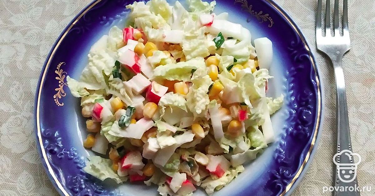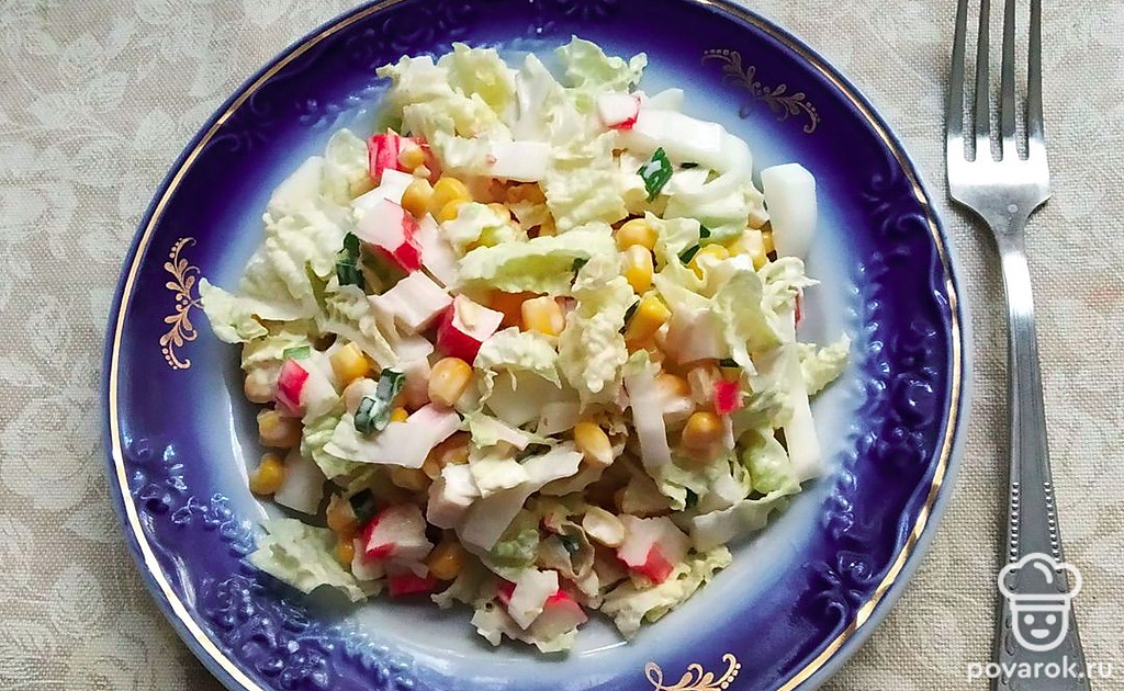 Салат из пекинской капусты с крабовыми палочками и кукурузой