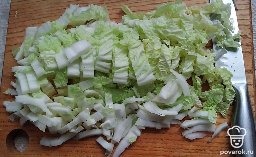 Мелко нарезать капусту.