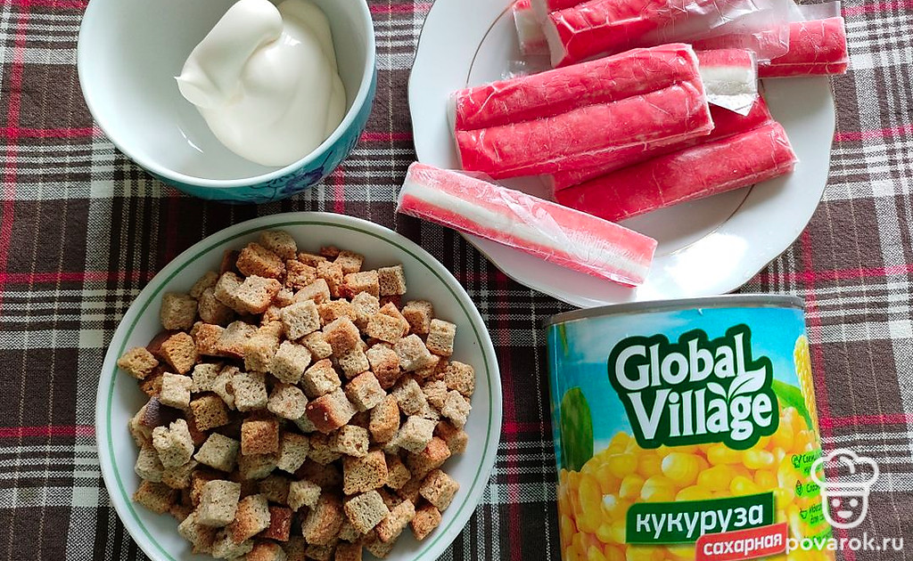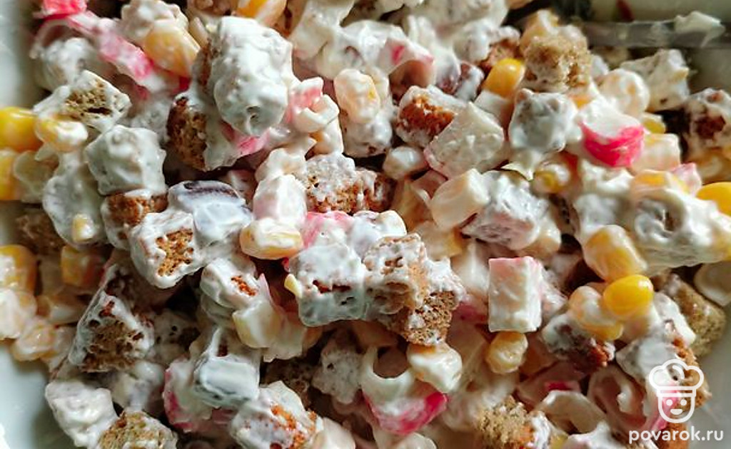 Салат «Быстрый» с кукурузой и ржаными сухариками