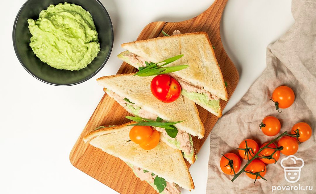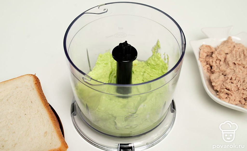 Подготовьте начинку. Положите мякоть авокадо в чашу блендера. Добавьте лимонный сок, творог. Посолите и поперчите. Взбейте до однородного и нежного пюре. В отдельной миске разомните вилкой печень трески.