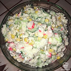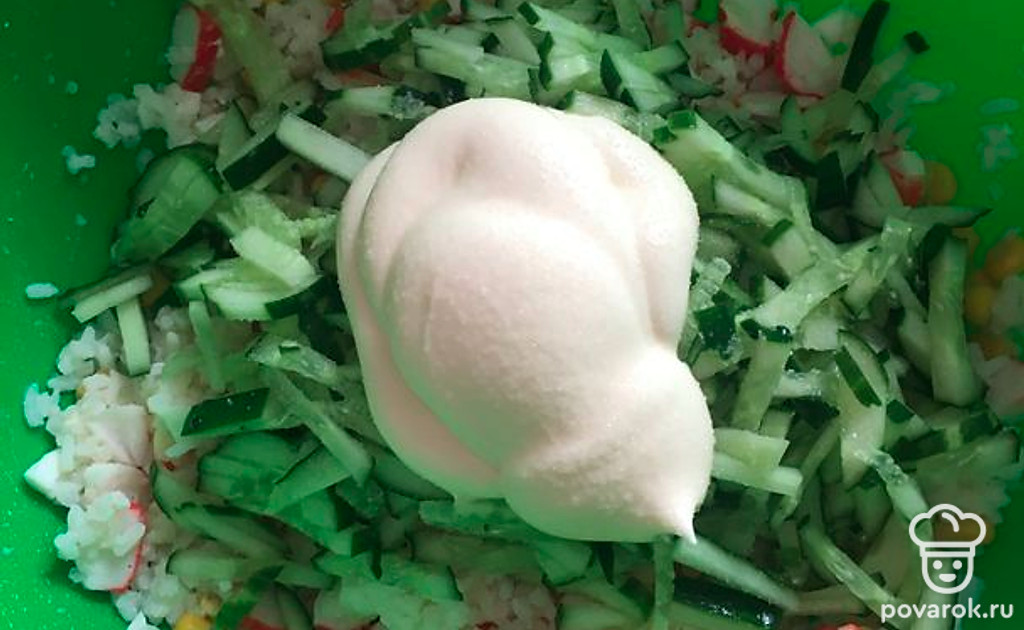 Заправляем салат майонезом и солью по вкусу. Все перемешиваем. Салат готов!