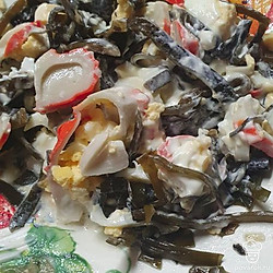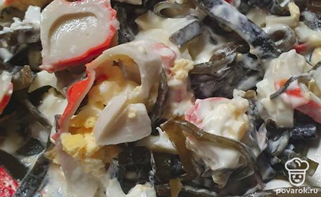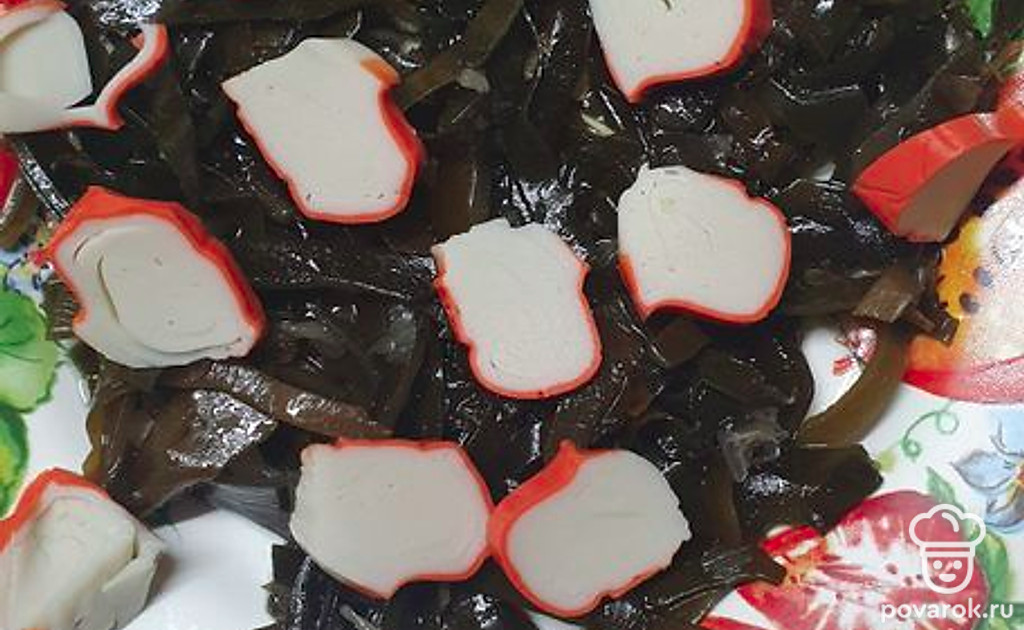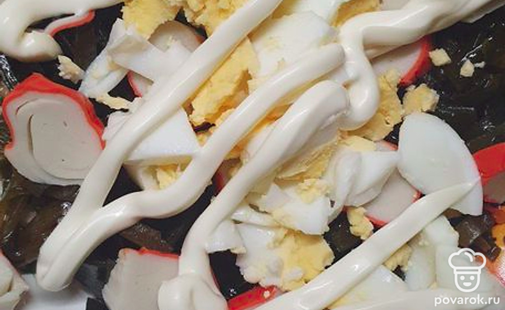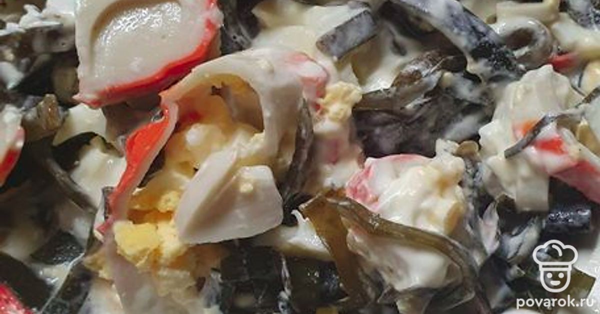 Очень полезный салат с водорослями, крабовыми палочками и яйцом. Море витаминов!