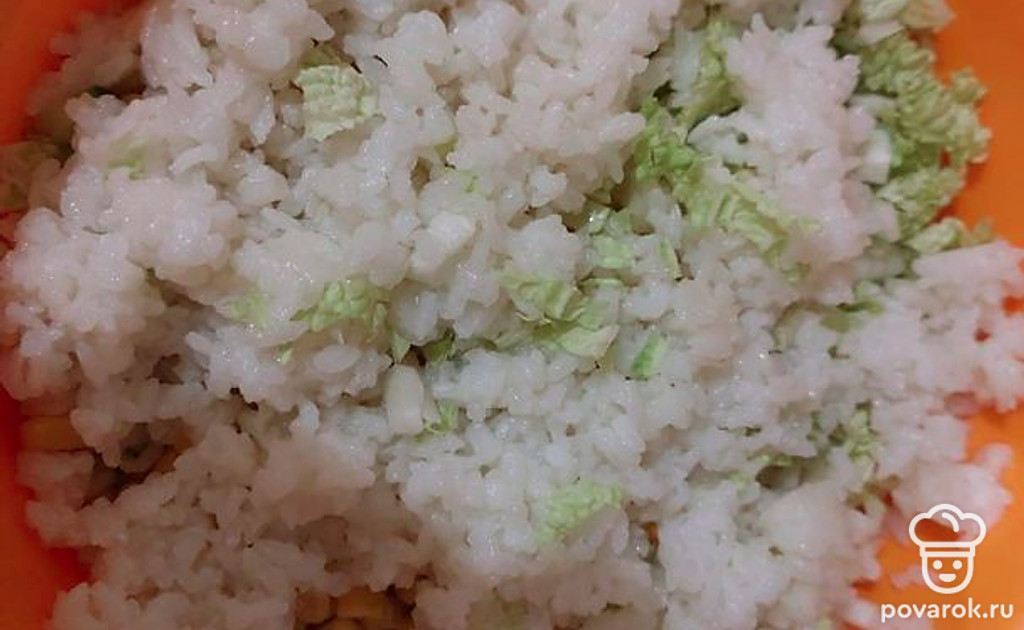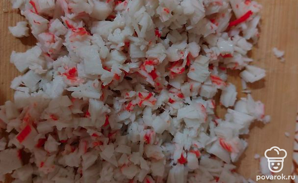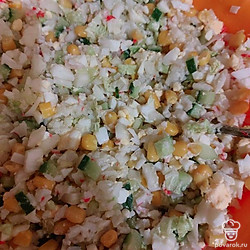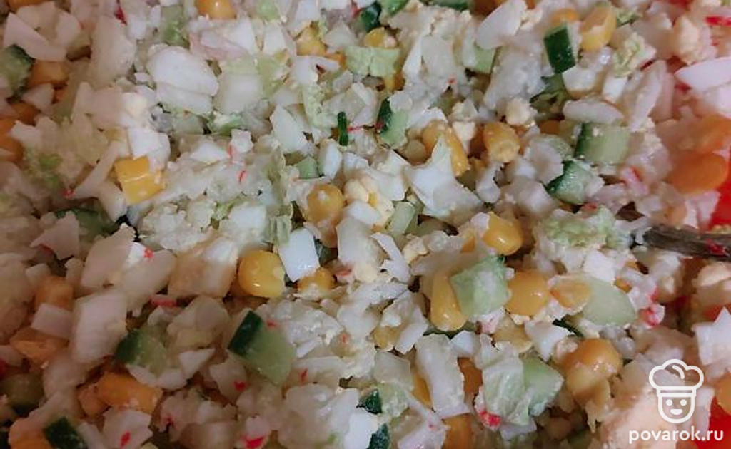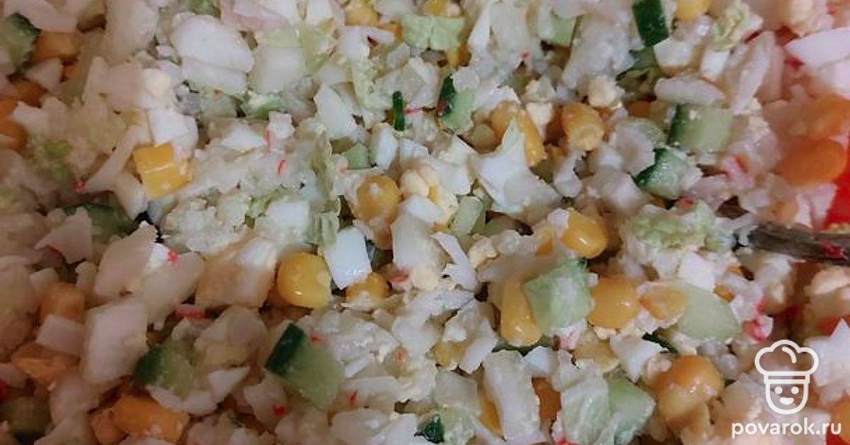 Салат с крабовыми палочками, кукурузой и рыбными консервами