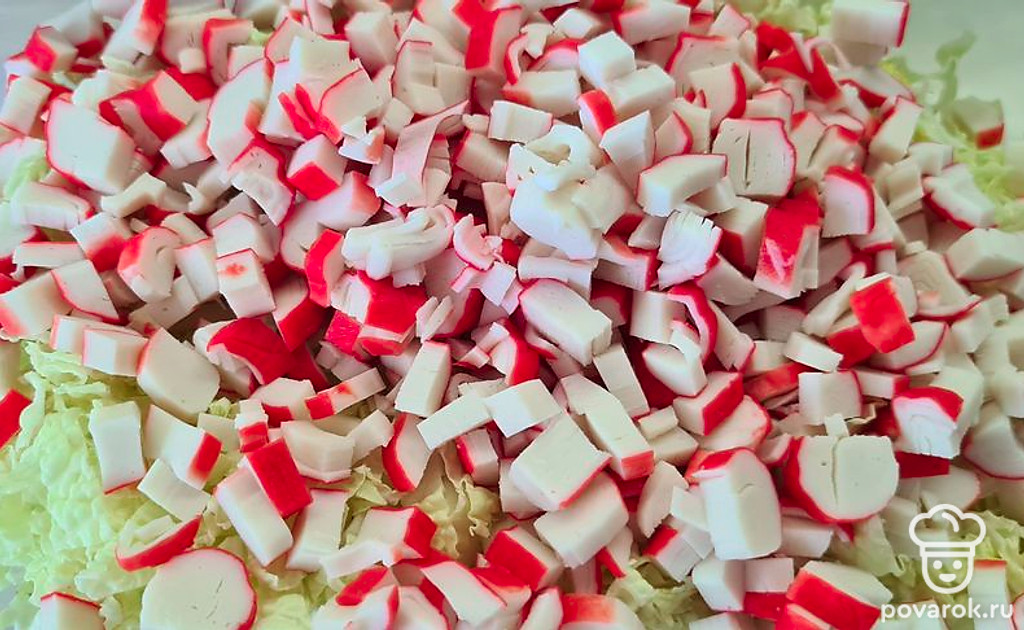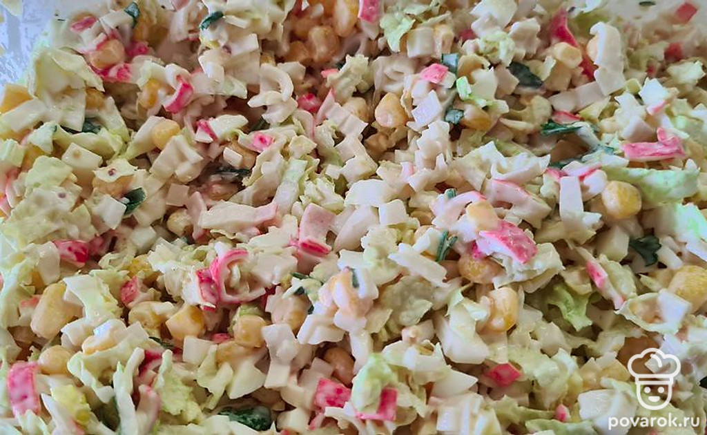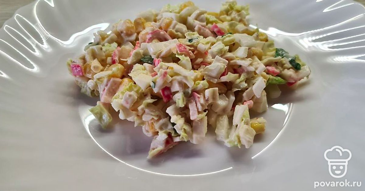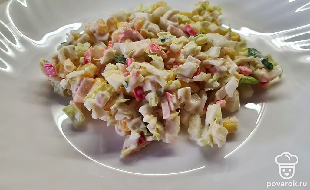 Салат с крабовыми палочками по-весеннему со свежей зеленью