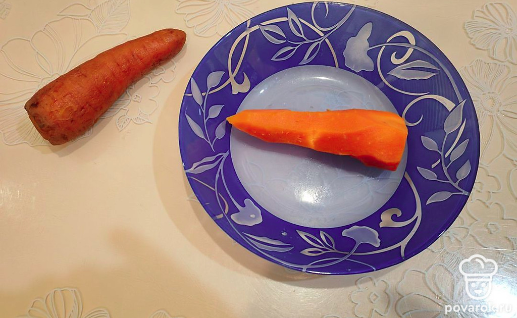 Возьмите 1 морковь. Варите в течение 40 минут. Остудите и почистите.
