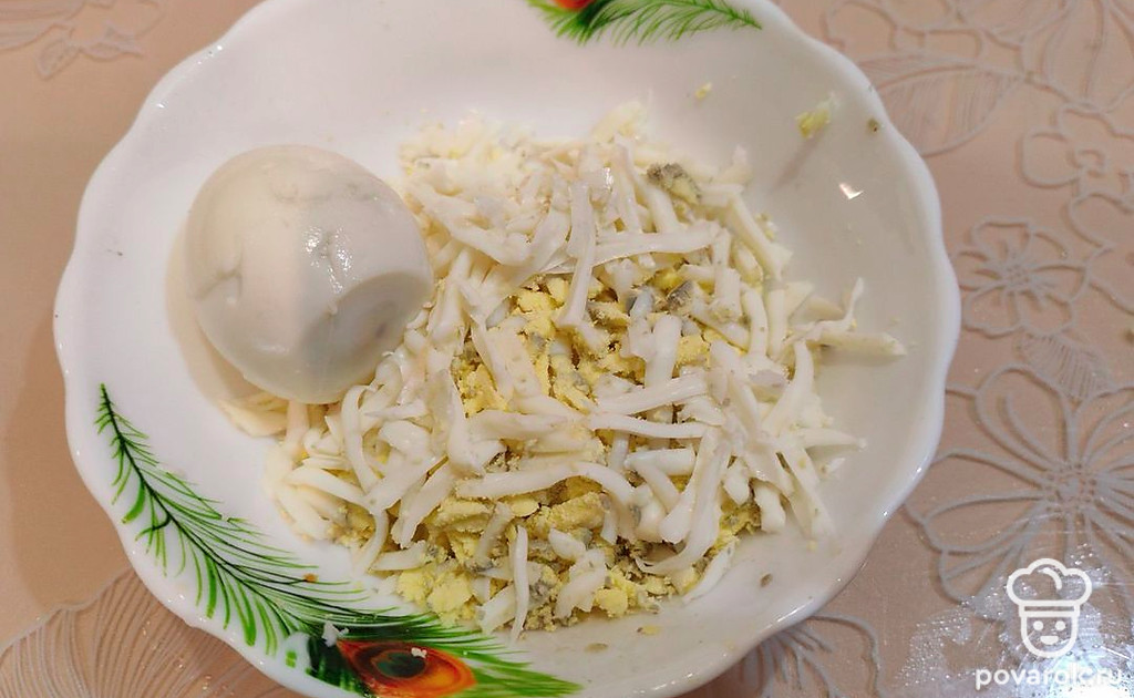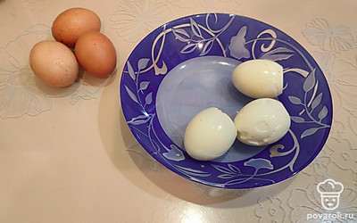 3 яйца варите в течение 10 минут. Остудите и почистите.