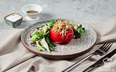 Если хочется приготовить вкусное и небанальное блюдо, обратите внимание на рецепт фаршированных индейкой помидоров. Это аппетитная и достаточно сытная закуска готовится на удивление легко и быстро. Чтобы сделать блюдо полезнее, используйте при готовке охлажденное мясо индейки вместо замороженного.