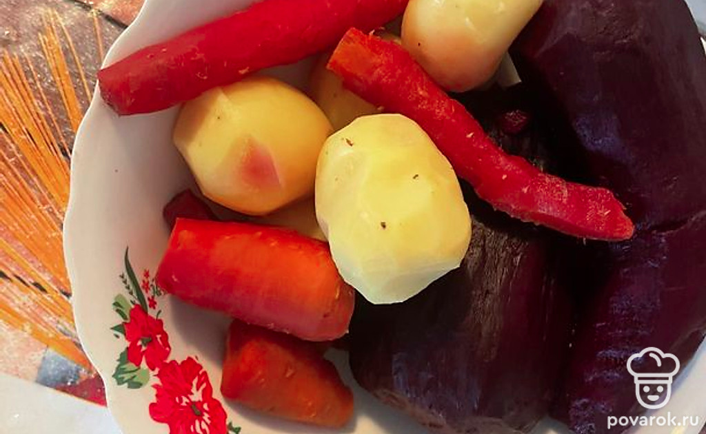 Отварить и почистить овощи.