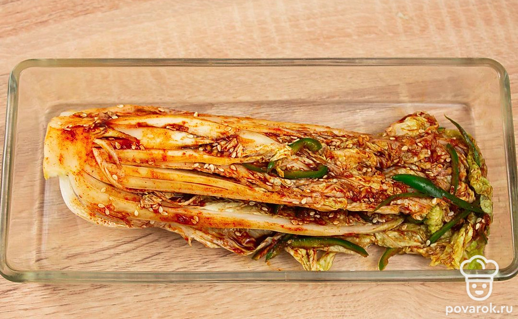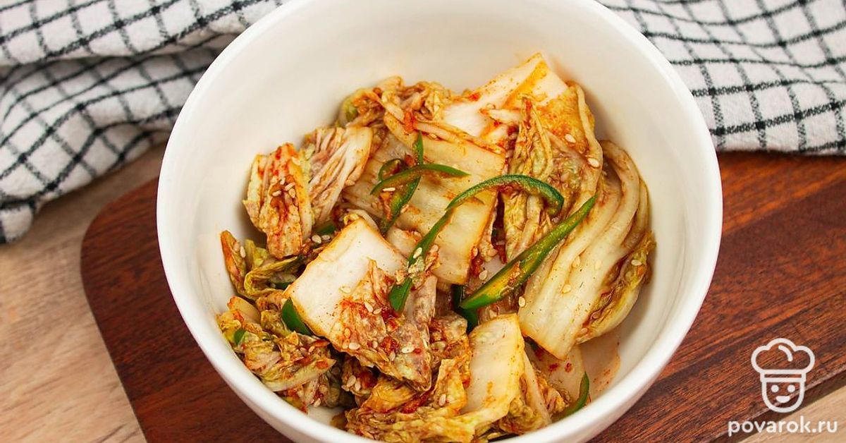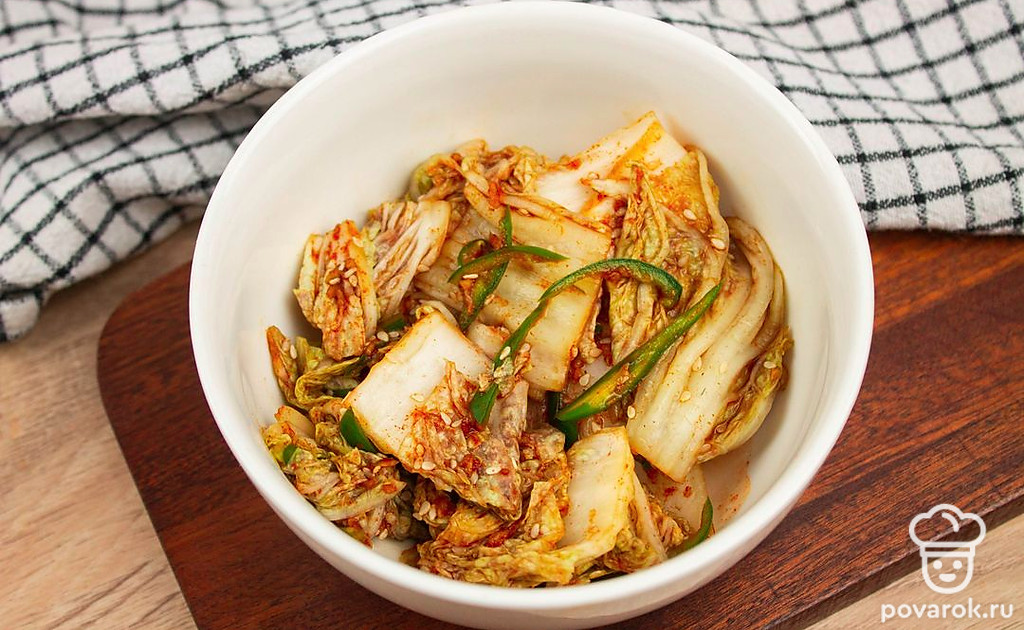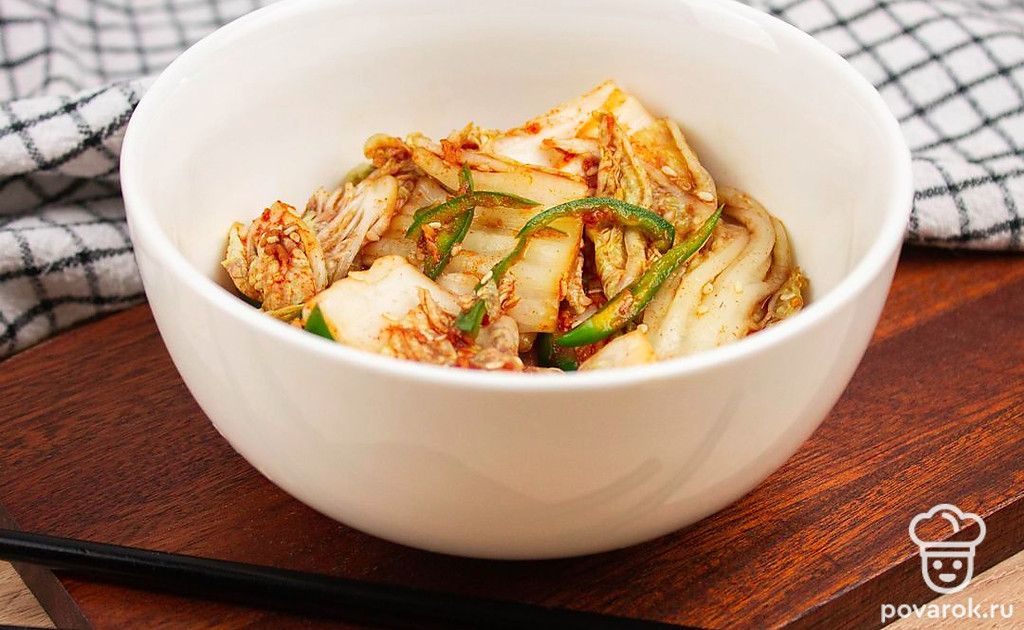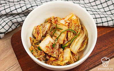 Кимчи с соевым соусом и острым перцем – традиционное блюдо корейской кухни. Предложенный рецепт относится к быстрому кимчи. В Южной Корее и в корейских ресторанах во многих странах мира процесс ферментации занимает несколько недель.