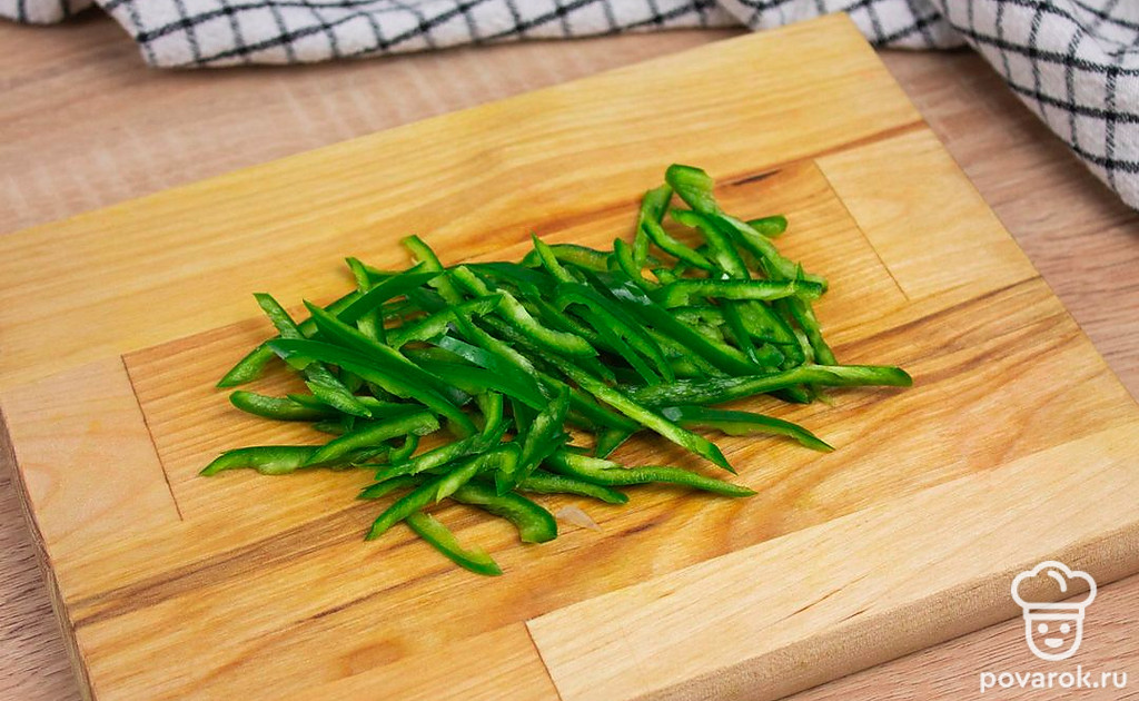 Выложите все ингредиенты для начинки. Промойте пекинскую капусту и перец.