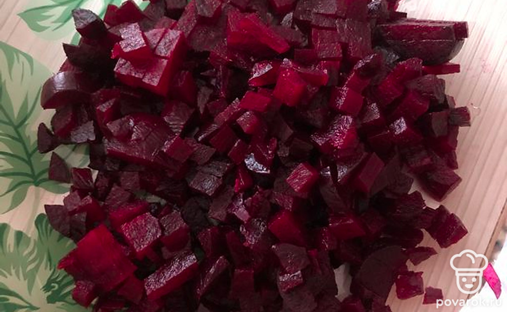 Отварную свеклу чистим и нарезаем.