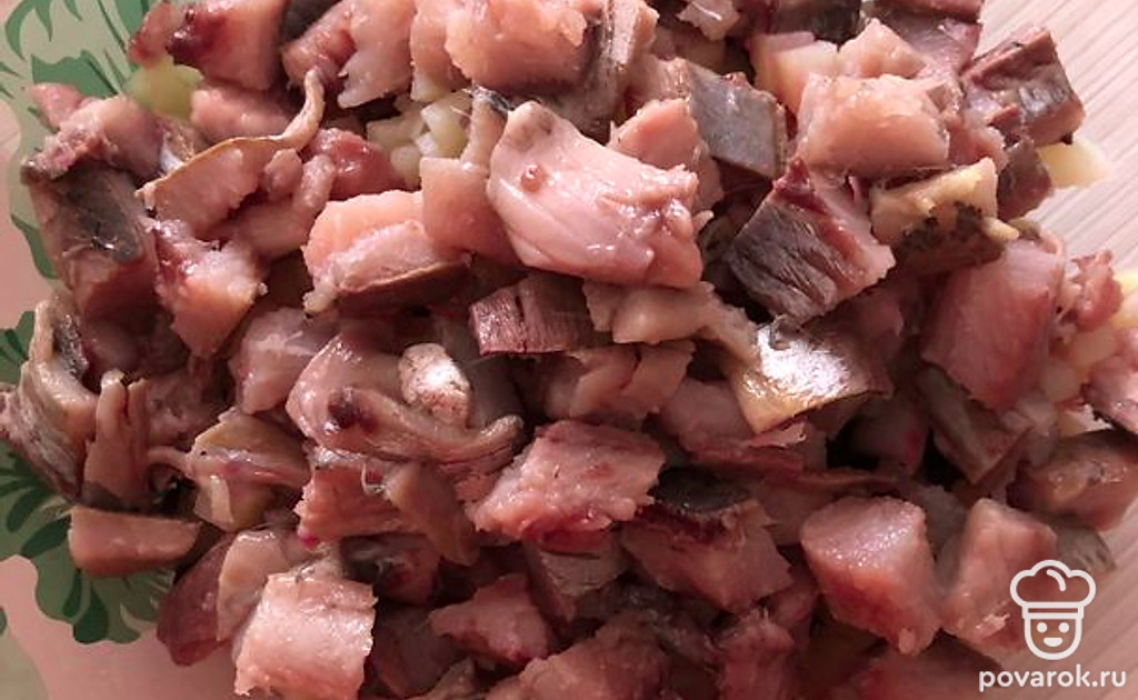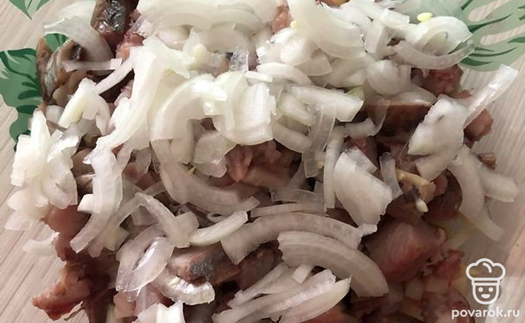 Чистим и нарезаем сельдь.