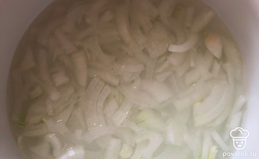 Маринуем лук в уксусе минут 10.
