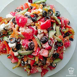 Быстрый греческий салат простой рецепт, который уже давно стал привычным на праздничных столах. Основным ингредиентом является сыр фета. Отличительной особенностью данного салата является то, что овощи нарезают довольно крупными кусочками, по сравнению с другими овощными салатами. Такая особенность не портит салат, а является его визитной карточкой. Вкус всех ингредиентов все равно хорошо сохраняется, даже при такой нарезке.