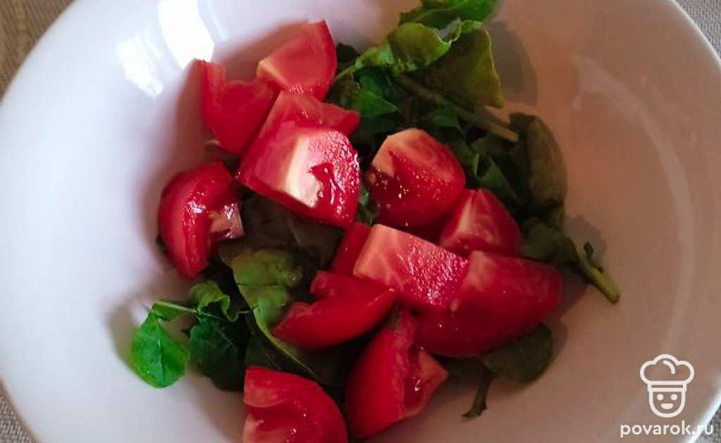 Руколу моем и нарезаем.
