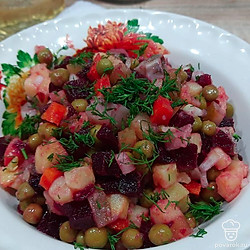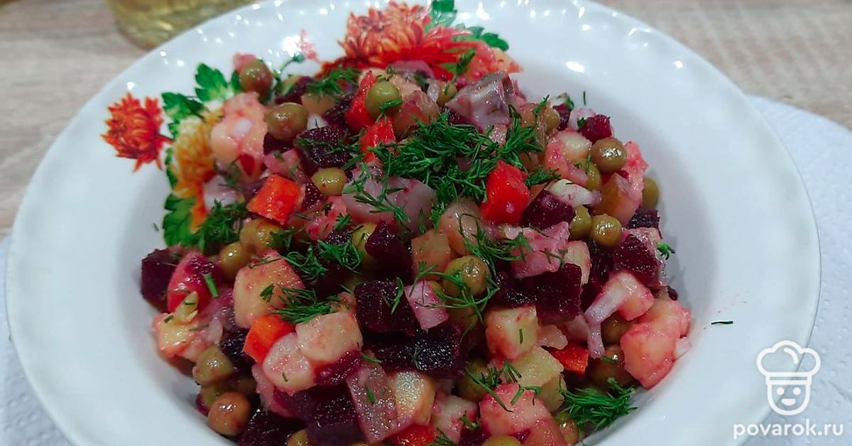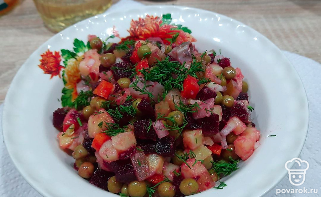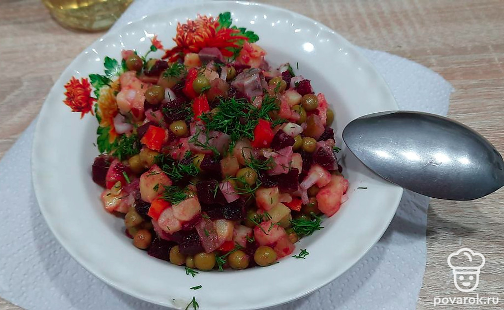 Если вам поднадоел обычный винегрет, то можно разнообразить это блюдо, добавив слабосоленую рыбу. Такой салат не стыдно подать и на праздничный стол.