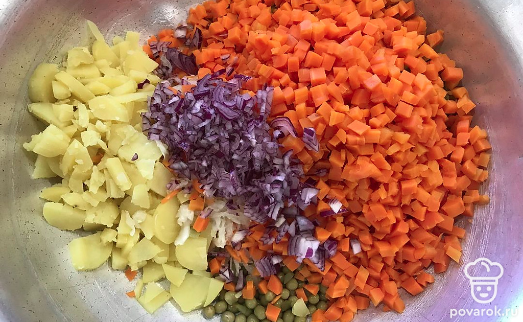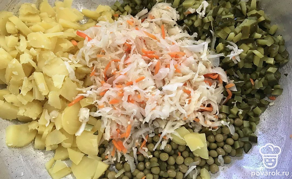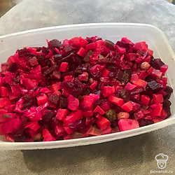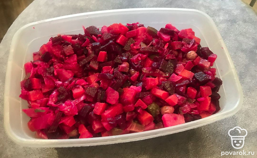 Попробуйте приготовить винегрет по этому рецепту, с добавлением красного лука.