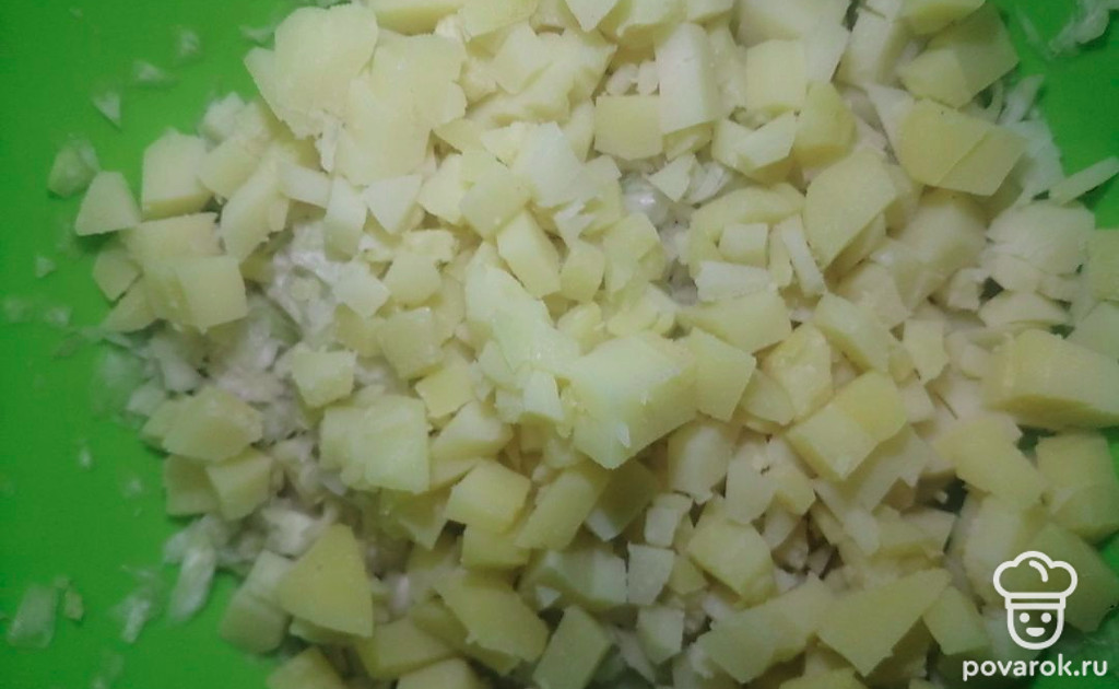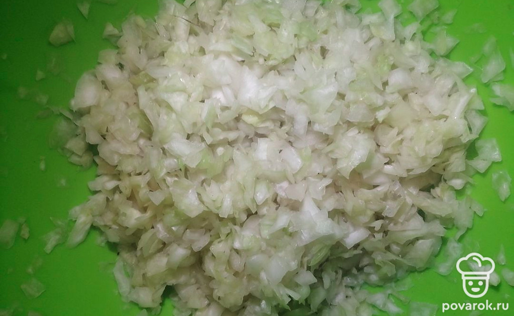 Отвариваем овощи. Шинкуем свежую капусту, солим слегка, мнем. Нарезаем лук репчатый мелким кубиком.