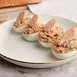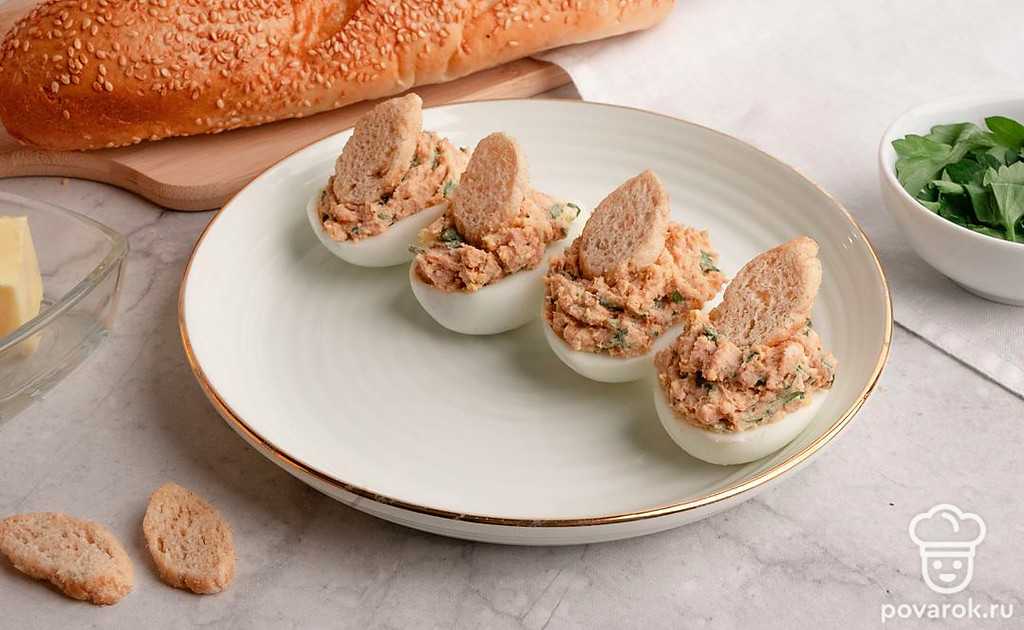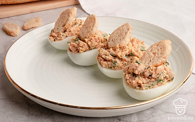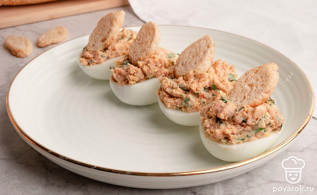 Яйца фаршированные паштетом с сухарями — универсальное блюдо, которое можно начинить и другими начинками. Такая оригинальная закуска пригодится при угощении нежданных гостей, и отлично разнообразит ваше ежедневное меню.