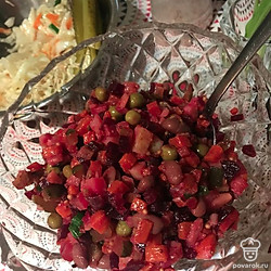 Перемешайте все овощи, посолите и поперчите по вкусу. Для заправки смешайте немного дижонской горчицы и растительного масла можно, добавьте немного уксуса.
