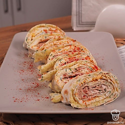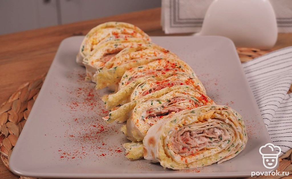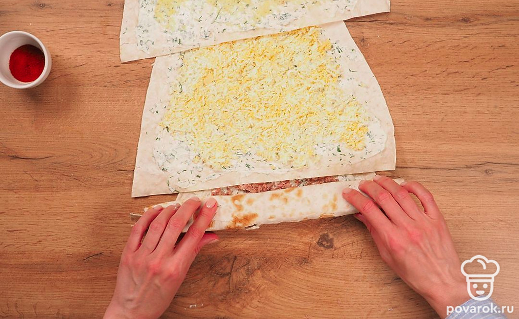 Готовые рулетики посыпьте паприкой для более яркого вида и пряного вкуса.