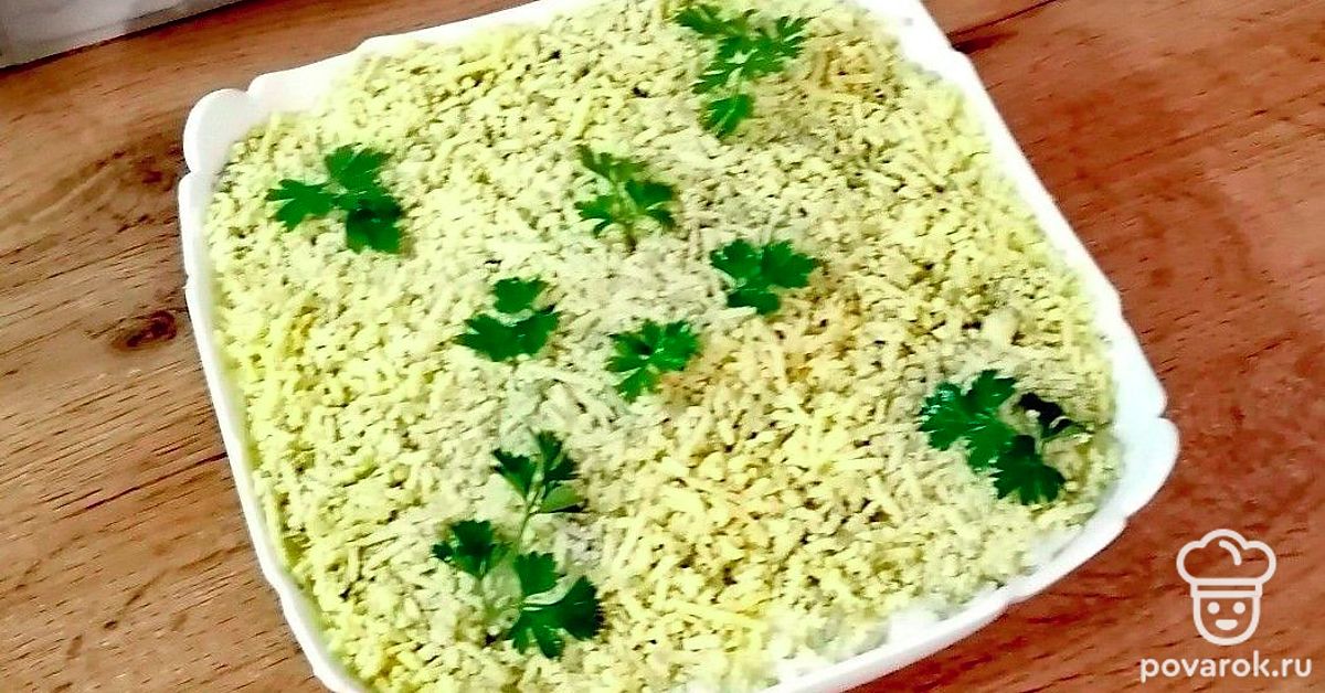 Вариант известного салата с консервами из рыбы.