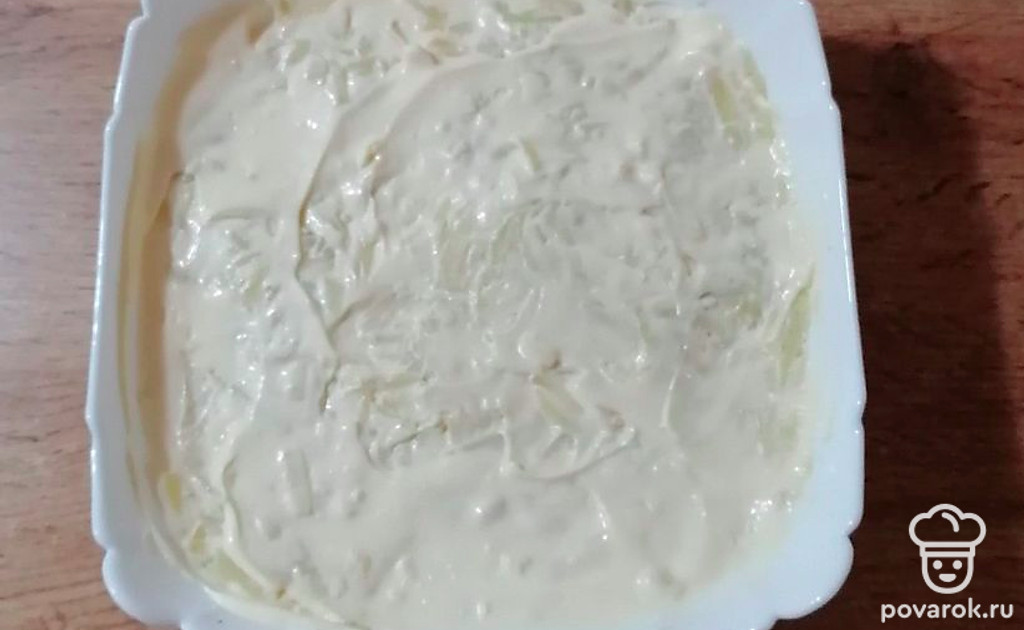 Картофельный слой смажьте майонезом.